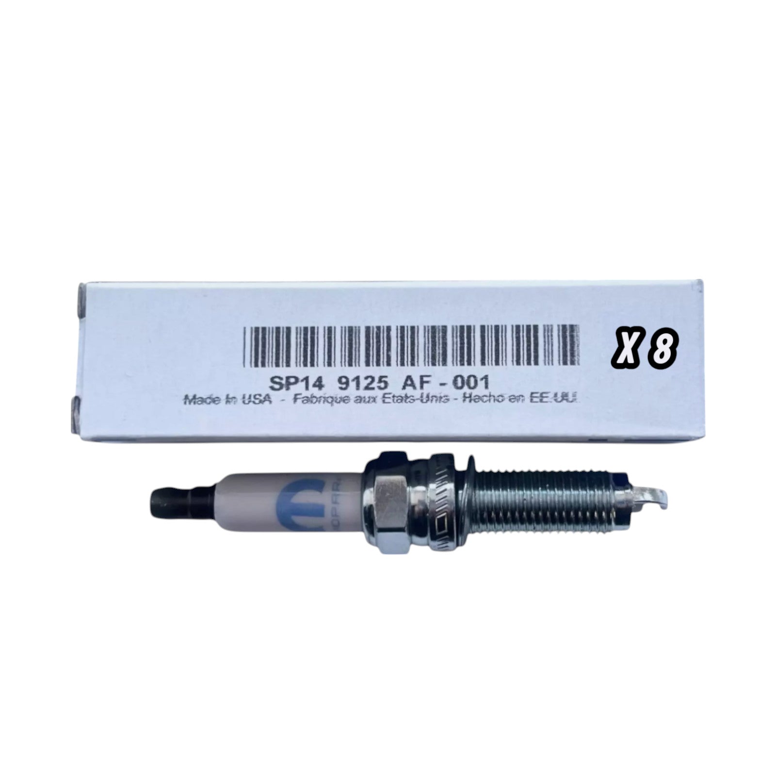 The product is a set of 8 OEM MOPAR spark plugs designed specifically for a 3.6L engine in Jeep vehicles. These spark plugs have the interchange part numbers AUTOLITE XP5701, DENSO 5356, and CHAMPION 9417, and are direct replacements for the OE/OEM part numbers SP149125AD, 05149125AE, and 5149125AD. Manufactured in the United States, these spark plugs come with a California Prop 65 Warning for Cancer & Reproductive Harm. Suitable for vehicles with the Pentastar engine, this custom bundle of spark plugs ensures reliable ignition performance for your Jeep.