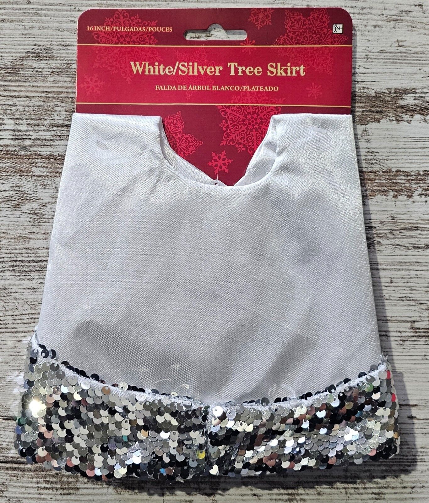 16" Diameter White with Silver Metallic Edge Tree Skirt - NWT