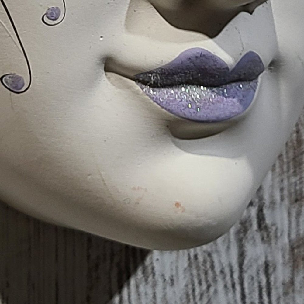 This vintage mask was handmade in Taiwan in 1989. The dimensions of the mask are 7in. x 4in. x 8in. (l x w x h) It weighs 8.3oz. The tip of the nose is chipped. There are small chips and marks on the forehead and chin, as shown in photos. **Brand new without tags, display model, not in original box or packaging. 100% authenticity guaranteed backed by our full reimbursement policy.**
