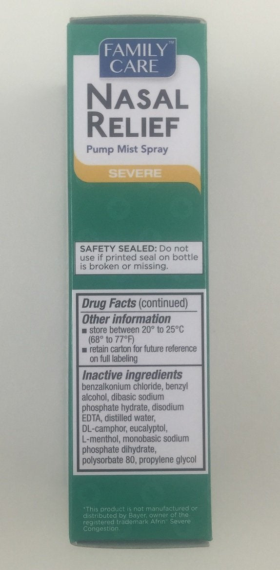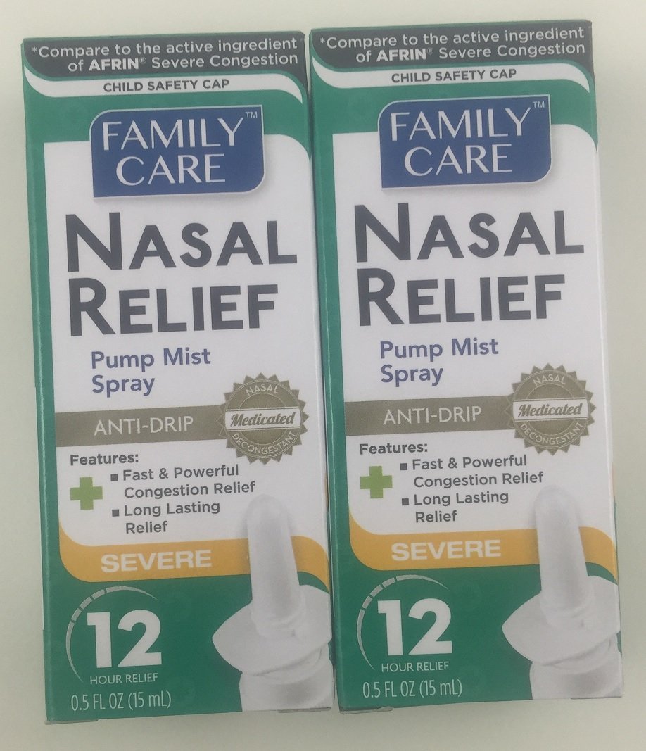 Family Care Nasal Relief Pump Mist Spray Anti-Drip uses a special formulation that prevents dripping from your nose and down your throat. The extra strength formulation works almost instantly and provides 12 hours of nasal relief. 2 Pack of Nasal Relief.