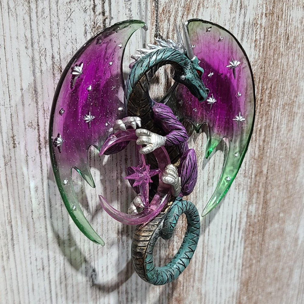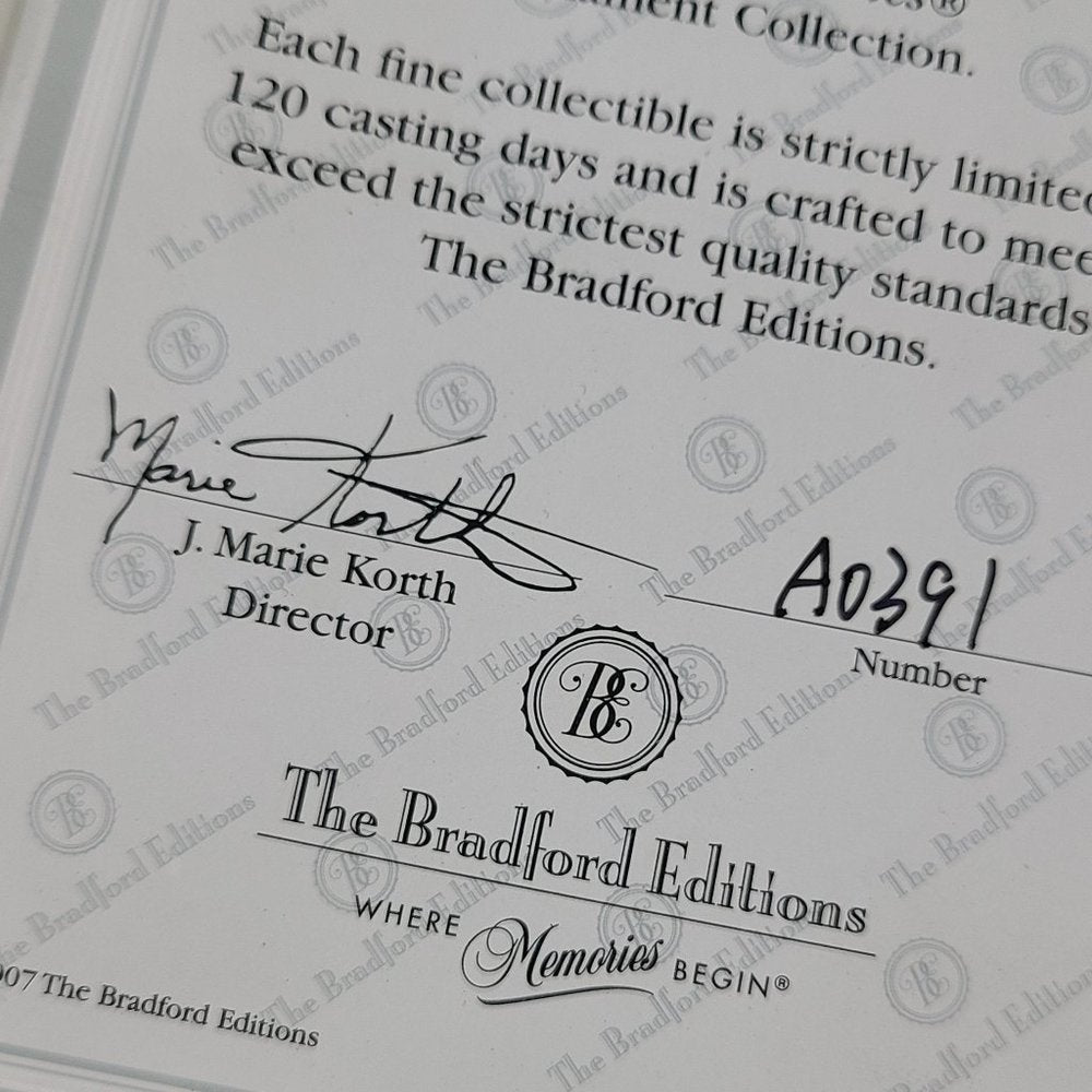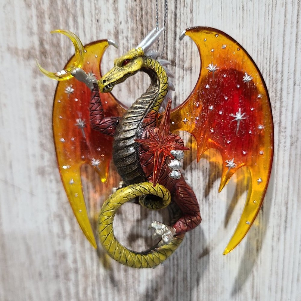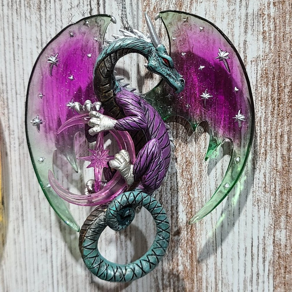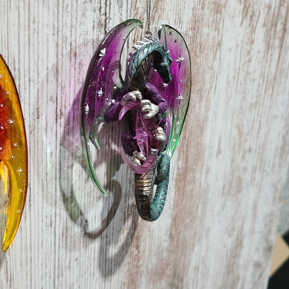 One set of two vintage, rare, collectible Celestial Dragon Ornaments. Certificate of Authenticity included stating "This is to certify that "Celestial Visions" and "Galaxy Guardian" are the Second Issue in the Celestial Dragons Heirloom Classics Ornament Collection. Each fine collectible is strictly limited to 120 casting days and is crafted to meet or exceed the strictest quality standards of the Bradford Editions. Signed by director J. Marie Korth. Each dragon is meticulously handcrafted and hand-painted in vibrant hues of pulsating purple, green tinted teals, hot fiery oranges and reds. Each ornament is approximately 4in. x 1in. x 5in. (l x w x h). These items are brand new, in original packaging, with tags attached.