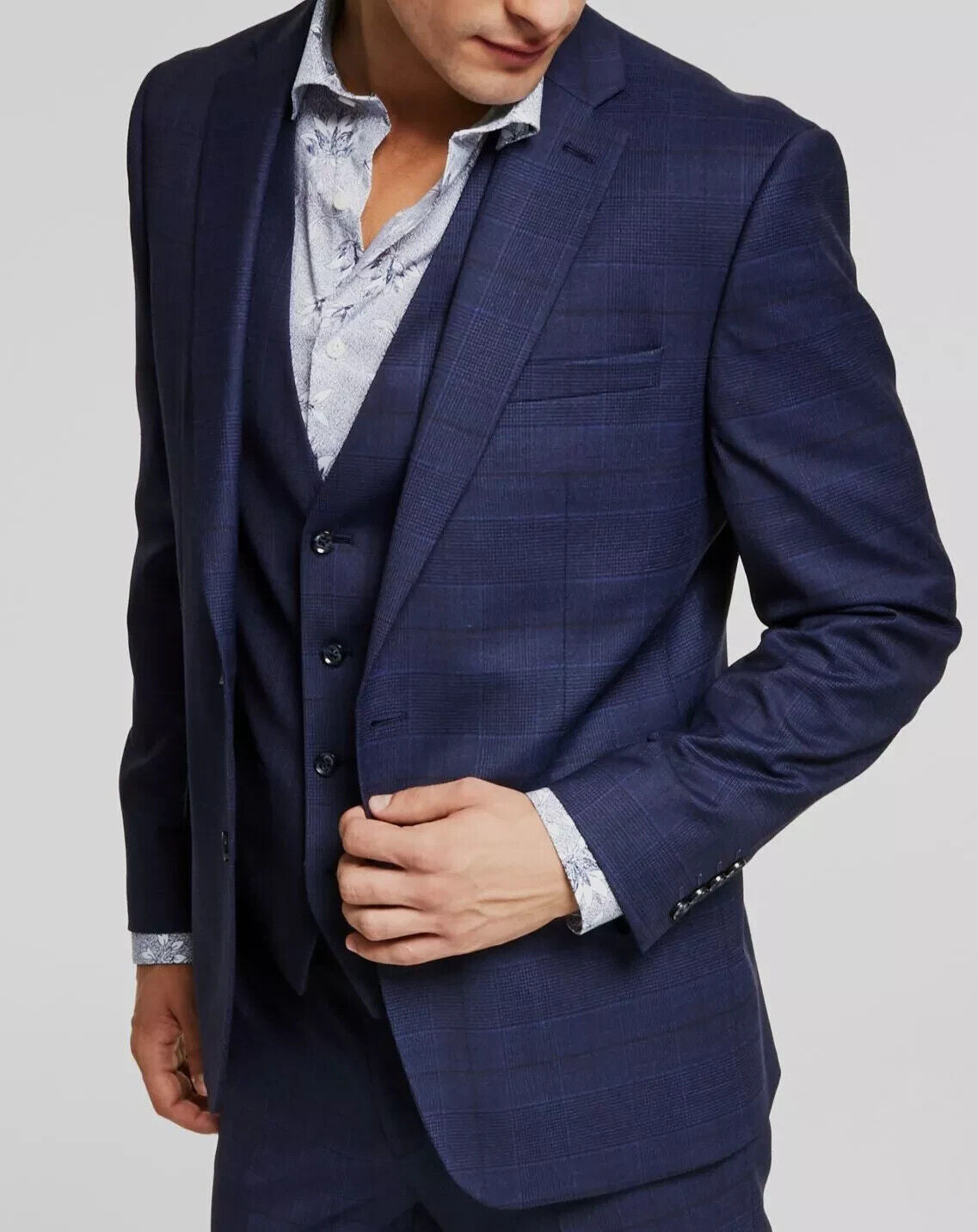 $425 Bar III Men's Blue Plaid Slim-Fit Wool Sport Coat Suit Jacket Size 40S