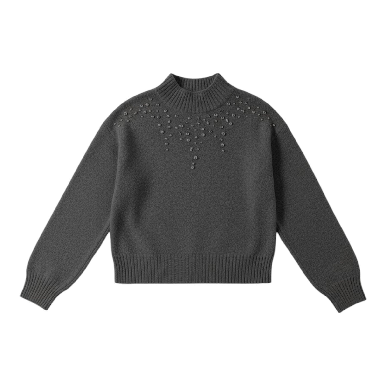 The a.n.a Women's Mock Neck Embellished Long Sleeve Pullover Sweater in XLT is a stylish and comfortable addition to any winter wardrobe. Made of acrylic knit fabric in a classic fit, this solid gray sweater features embellishments and sequins along the neckline and sleeves, adding a touch of sparkle to your casual look. Easy to care for with its machine washable design, this pullover sweater is perfect for the colder seasons and can be dressed up or down to suit any occasion.