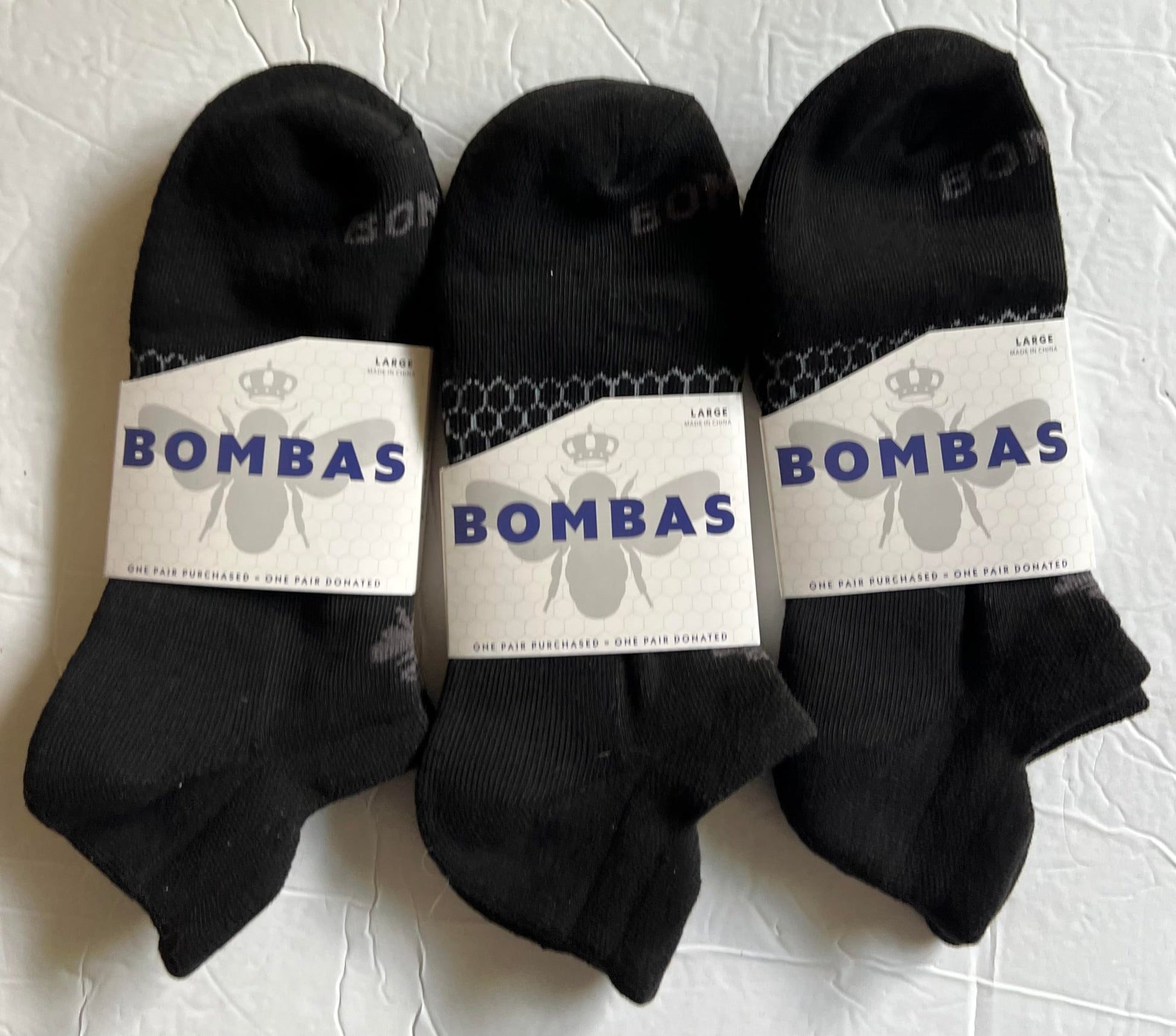 BOMBAS Unisex 3-Pack Ankle Socks LARGE Mens 9.5-13, Womens 11-13 Color Black