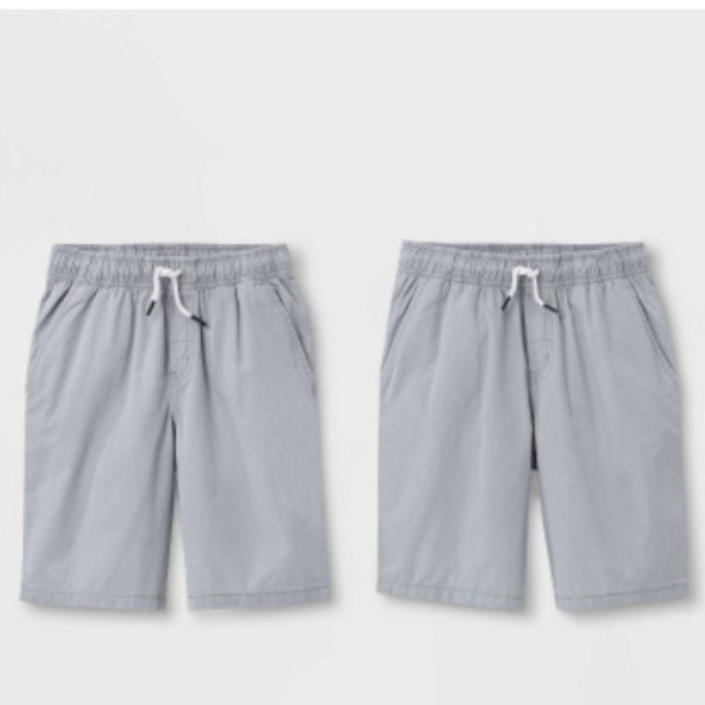 Upgrade his casual bottoms with these Gray/Gray Pull-On Woven Shorts from Cat & Jack. This pack of boys' shorts made from breathable cotton fabric makes a cool and comfortable staple for summer wear. Sporting a mid-rise fit in a solid-gray tone, these pull-on shorts easily pair with a variety of casual looks. The elastic waist with a drawstring fastening offers a perfect fit, while the side and back patch pockets add a touch of functional style. He can pair them with a collared or crewneck tee to dress his look up or down.