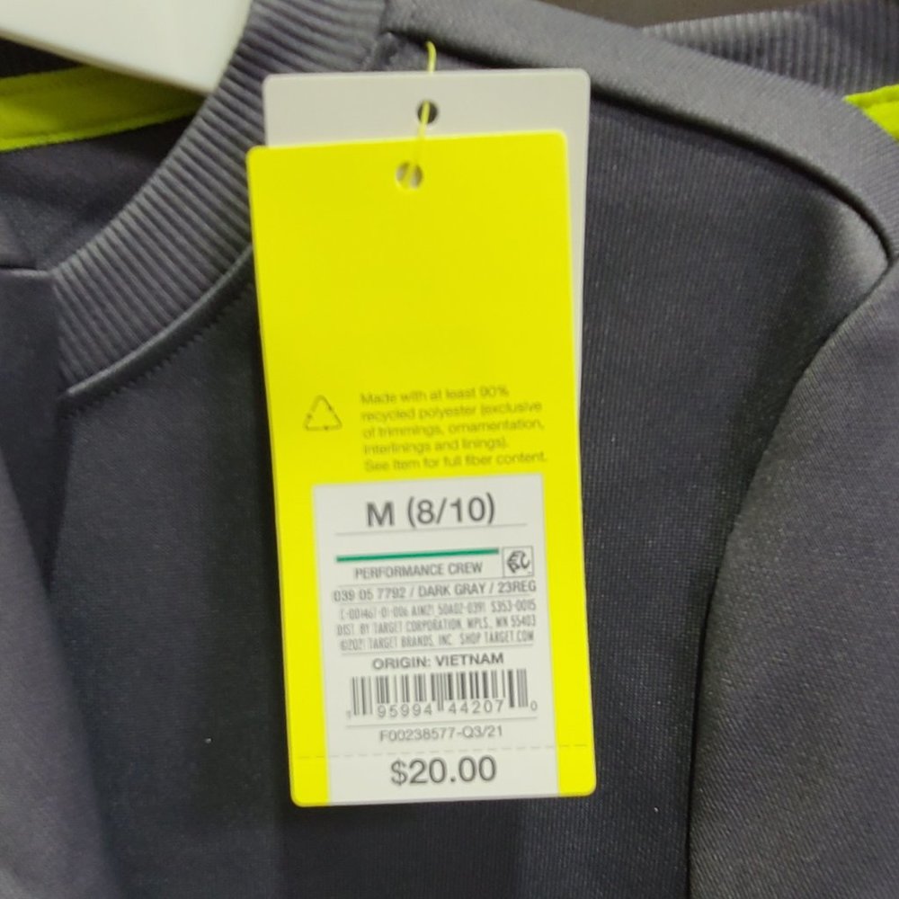 Moves with: moisture-wicking, quick-dry recycled polyester fabric