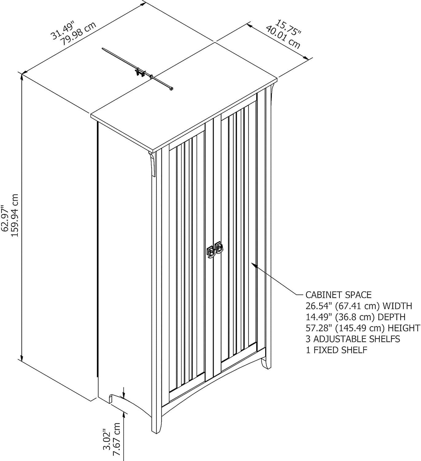 Maximize your space with the Bush Furniture Salinas Tall Storage Cabinet, featuring a classic antique white finish that complements any decor. Designed to offer both style and functionality, this cabinet boasts a sleek, rectangular shape with a sturdy engineered wood construction. It's an ideal piece for a variety of rooms, from your home office to the bedroom, ensuring your items are stored safely and neatly.