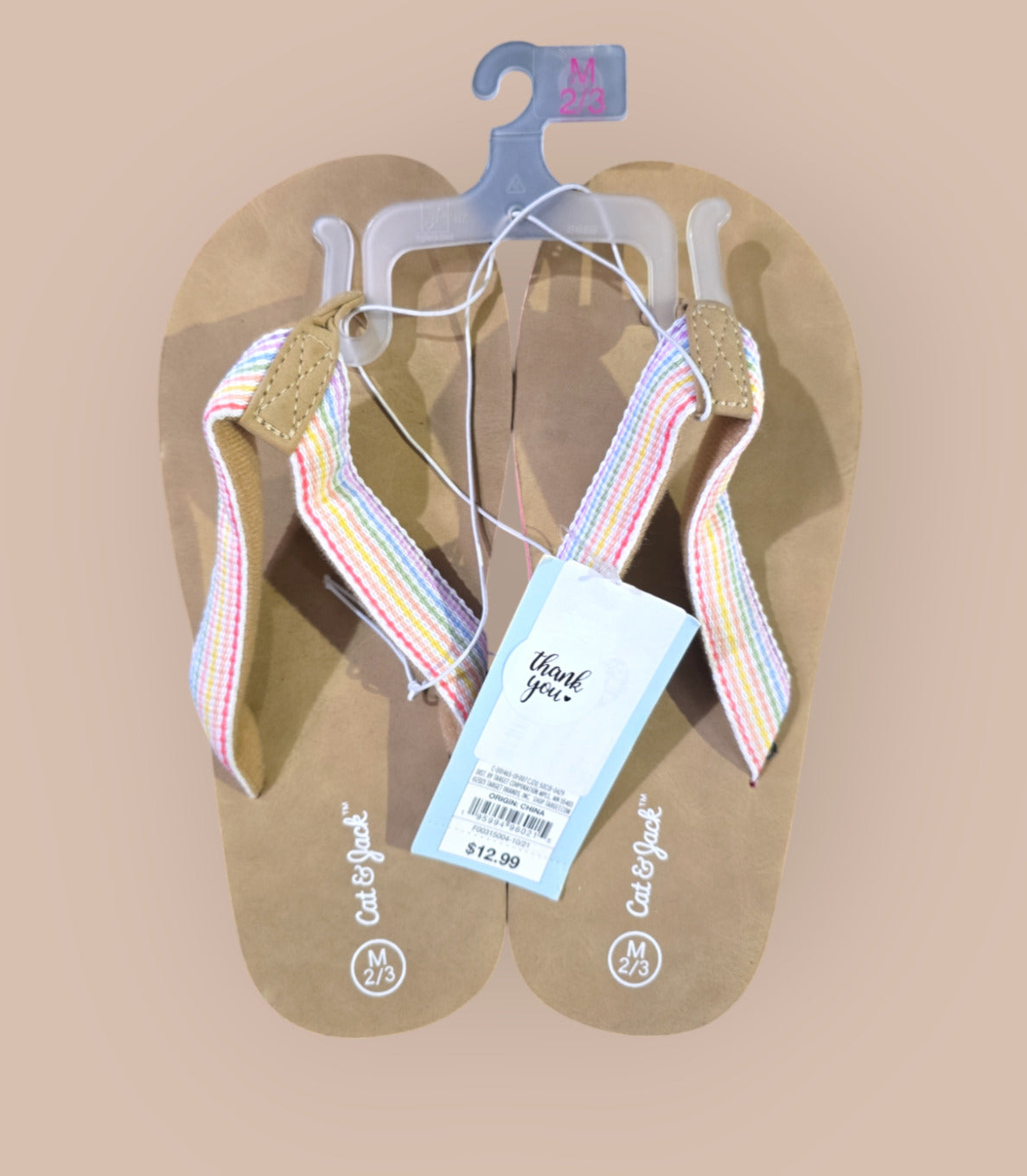 Cat & Jack Youth Girls M Shoe Size 2/3 Tan Ava Rainbow Striped Strap Flip Flops
