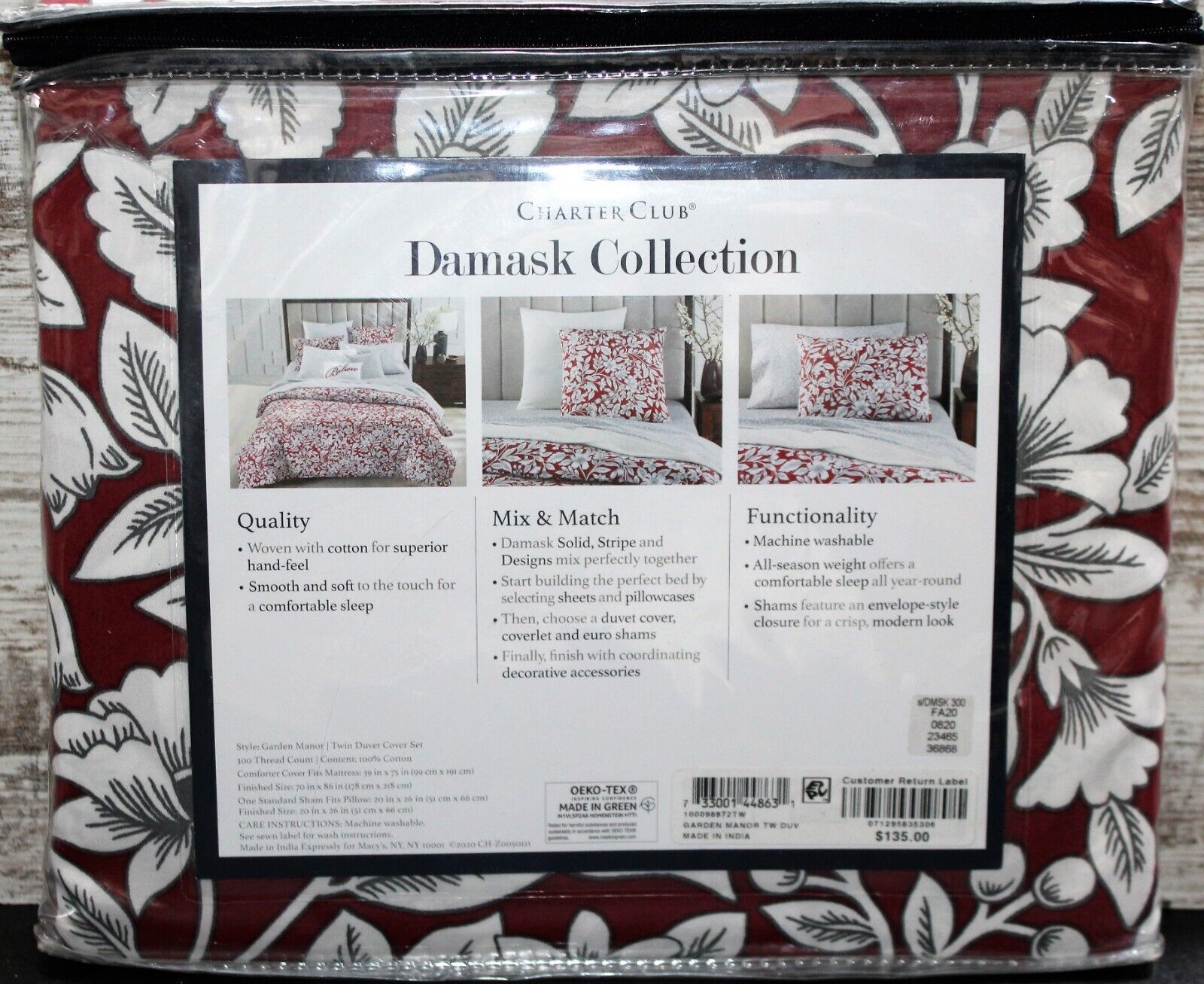 CHARTER CLUB - DAMASK DESIGNS - 2 PC DUVET COVER SET - TWIN - GARDEN MANOR
