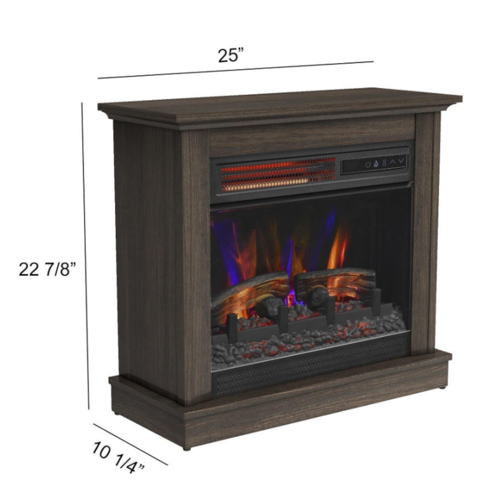 The ChimneyFree Higgins 25" Waverly Oak Wall Mantel Electric Fireplace is a modern, freestanding fireplace suitable for indoor spaces like living rooms, bedrooms, and home offices. With a 5200 BTU heating rating and infrared heating technology, this electric fireplace provides warmth in a stylish design. Featuring a remote control, adjustable brightness, and automatic shut off, this fireplace offers convenient settings for added comfort. The 18RM309-PO132 model is crafted from wood, adding a touch of natural beauty to any room while providing efficient heating coverage up to 1000 sq ft. With its sleek design and functionality, this electric fireplace is a great addition to any home.