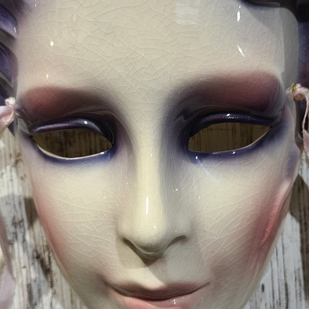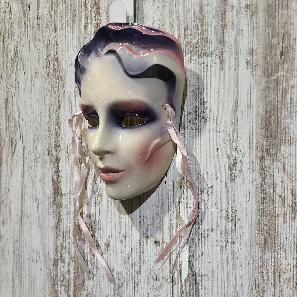 This vintage Clay Art Mask was handmade in San Francisco, California in 1990-1. The dimensions of the entire mask, including the hanging ribbons, are 6in. x 12in. x 4in. (l x h x w) The dimensions of the mask, not including the hanging ribbons, are 6in. x 9in. x 4in. (l x h x w) The mask weighs 13oz. **Brand new, without tags, display model, not in original box or packaging. This item has no defects. 100% authenticity guaranteed backed by our full reimbursement policy**
