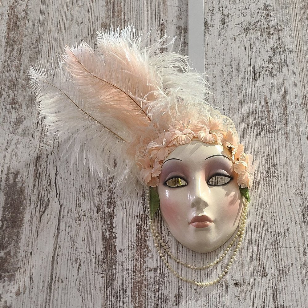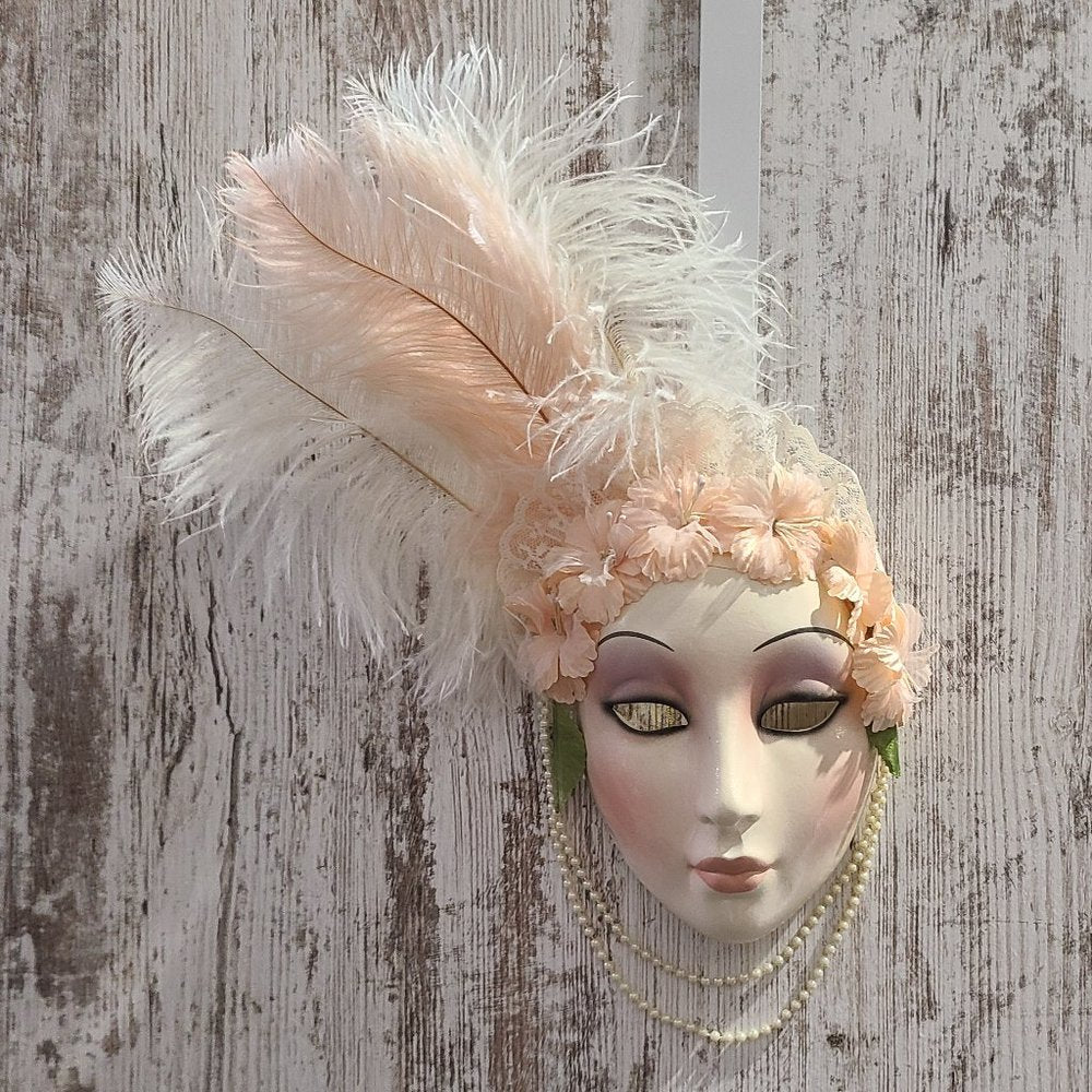 Clay Art About Face Lady's Pink and White Feather Face Mask