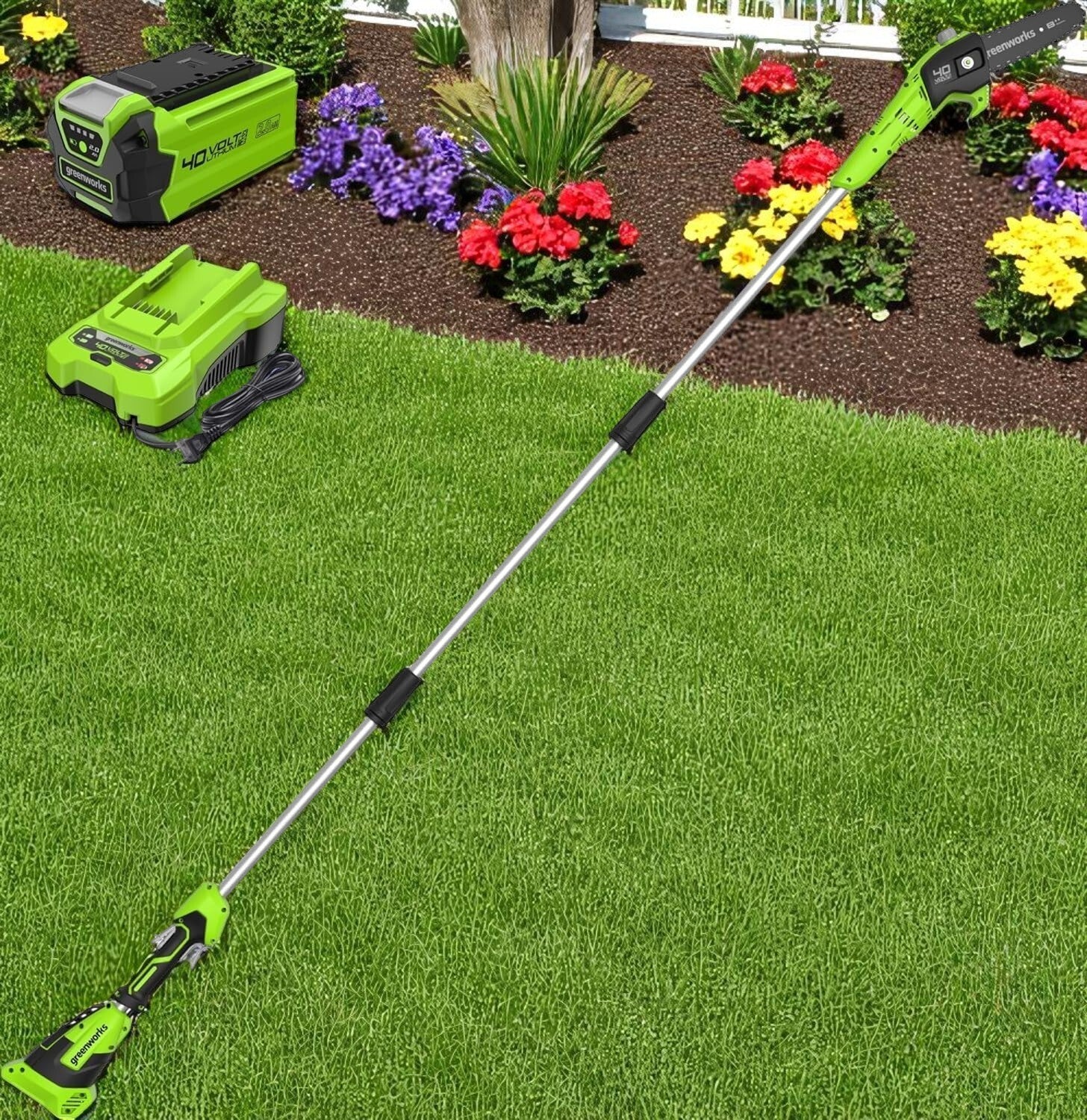 Crafted with durability in mind, this saw comes complete with a helmet, gloves, and an operator's manual to help you get started right away. The lightweight design (7.8 lb) coupled with the power of a 1 HP motor makes this tool a great addition to any gardening arsenal. With a voltage of 40 V and a single lithium-ion battery required, this GreenWorks model is ready to tackle your pruning needs without the hassle of cords.