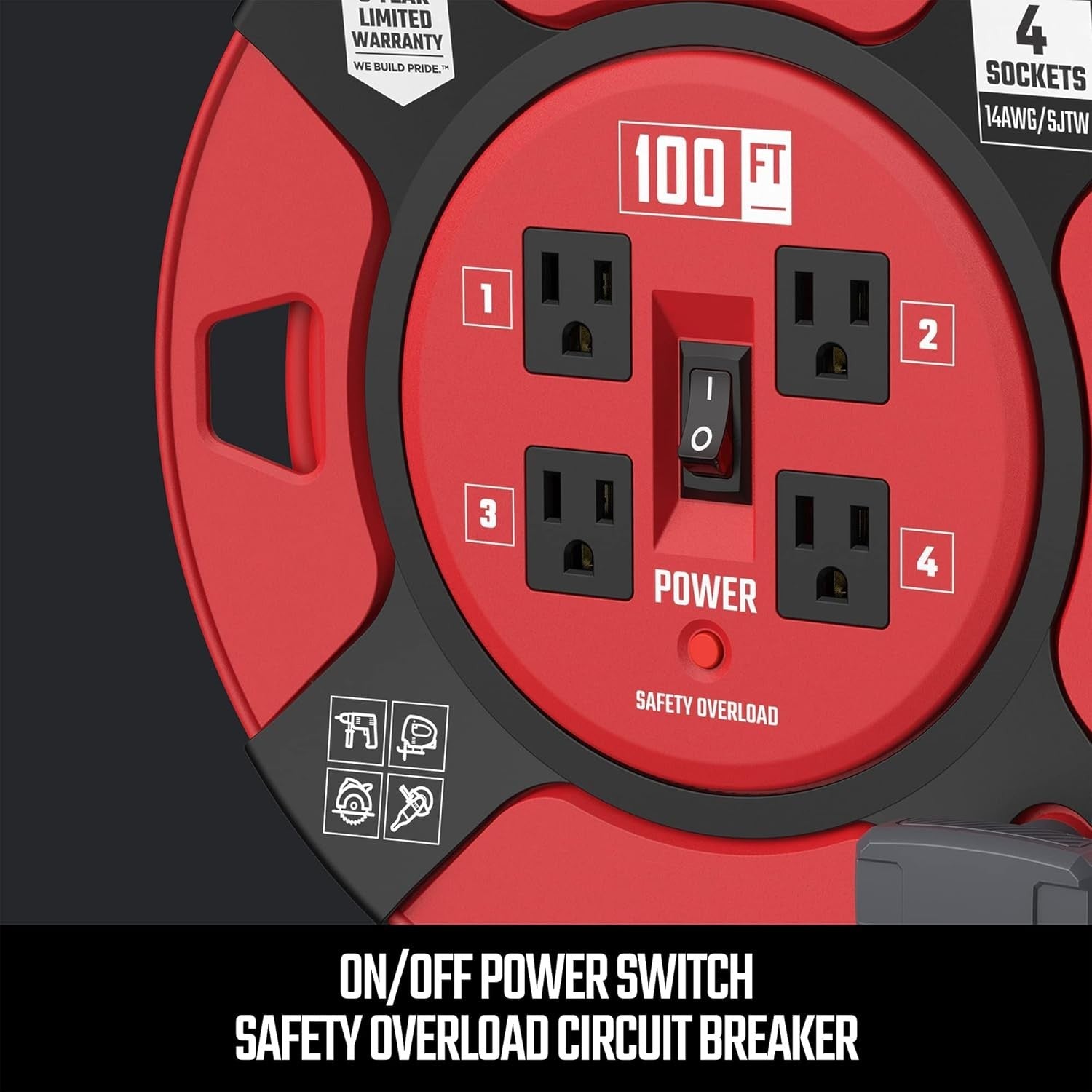 The CRAFTSMAN 100 Ft. Retractable Extension Cord Reel with 4 Outlets is a heavy-duty power supply solution for both indoor and outdoor use. With a 100 ft. copper cord and a maximum input current of 11-15 A, this extension cord reel provides ample power and reach for various electrical needs. The retractable design allows for easy storage and organization, while the 4 outlets offer convenient versatility for powering multiple devices. Made by Craftsman, a trusted brand in home improvement, this extension cord reel is reliable and efficient for all your power supply needs.