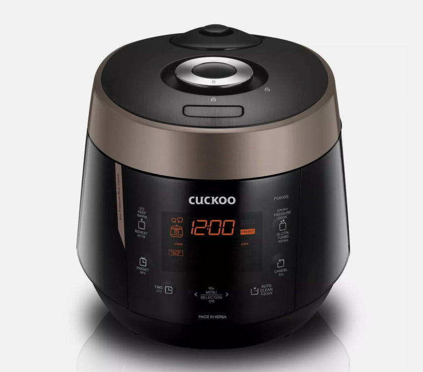 Enjoy Gourmet Creations with CUCKOO's CRP-P1009SB 10-Cup Heating Pressure Rice Cooker!Consistently delicious rice, optimally reheated leftovers, ready-made meals with the press of a button, and professional grade quality - with CUCKOO's CRP-P1009SB 10-Cup Heating Pressure Rice Cooker, all of this and more will be at your disposal. Key Features: Multi-Functional Cooking: This multi-functional cooker has 13 fully customizable menu options that allow a wide variety of meals, a reheat option for leftovers, and a keep-warm function to ensure none of your food is ever overcooked or burnt while serving. Smart Automated Technology: With Fuzzy Logic Technology, experiment with automated features such as the Preset Timer, which lets you place ingredients in the inner pot in the morning and come home to freshly made rice - no effort and no stress! 3 Language Voice Guide: Includes a voice navigation guide in English, Chinese, and Korean, this rice cooker will act as your personal kitchen assistant! High-quality Construction: Featuring a durable, inner pot with nonstick coating, both ensure efficiency, optimal temperature, and heat distribution throughout the cooking process. Hassle-Free Cleaning: When cooking is completed, initiate the Auto-Clean function to automatically steam the interior of the rice cooker for a deep, quick clean. Elevate your culinary experience with CUCKOO's CRP-P1009SB 10-Cup Heating Pressure Rice Cooker, where innovation meets gourmet excellence!