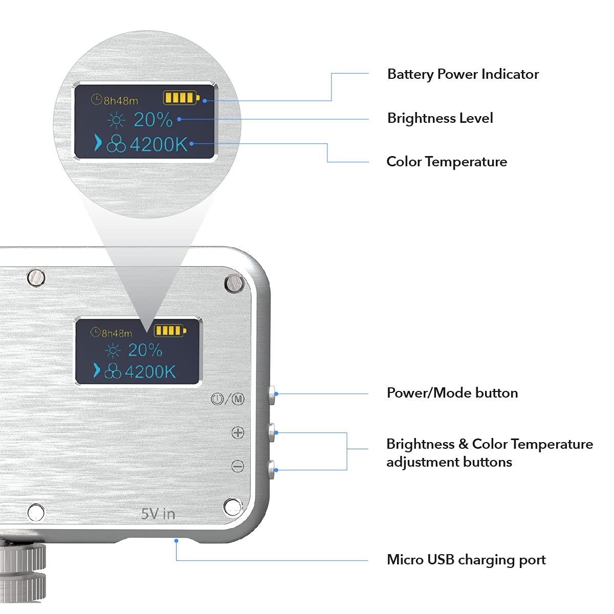 DIGIPOWER LED Video Light with 24 Brightness Levels, Colour Temperature Control and Light Filter, 112 LEDs + Universal Smartphone Holder for Mobile Phones, DSLR Cameras, Action Cams and Video Cameras
