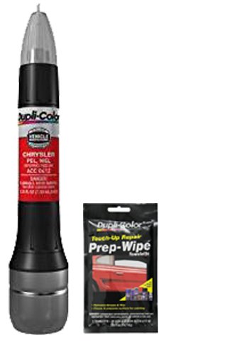 Bundle comes with: One Dupli-Color Metallic Inferno Red Chrysler Exact-Match Scratch Fix All-in-1 Touch-Up Paint (0.5 oz) - Use with vehicles that have the following color codes: PEW, WEL. Allows you to restore a scratch or chip in your vehicles finish. Abrasive prep tip removes loose paint and rust. Contains a primer (0.25 oz) and exact-color match paint (0.25 oz) in one. Clear coat will seal, protect and ensure a perfect factory matched finish Pen tip for fine scratches. Brush end for larger chips. One Dupli-Color Touch-Up Prep Wipe Towelette (8.5" x 11") - Specially formulated to remove oil, wax, grease, and other contaminants from the surface. Cleans and prepares the surface for painting.