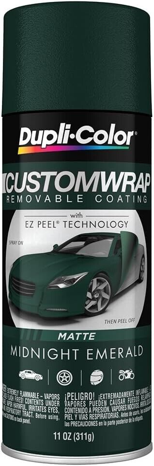 Enhance your vehicle's look with Dupli-Color CWRC813 Custom Wrap Midnight Series paint. The striking green hue, named Midnight Emerald by the manufacturer, is sure to make a statement. This 11oz. can provides ample coverage for a complete vehicle resurrection or partial touch-ups.