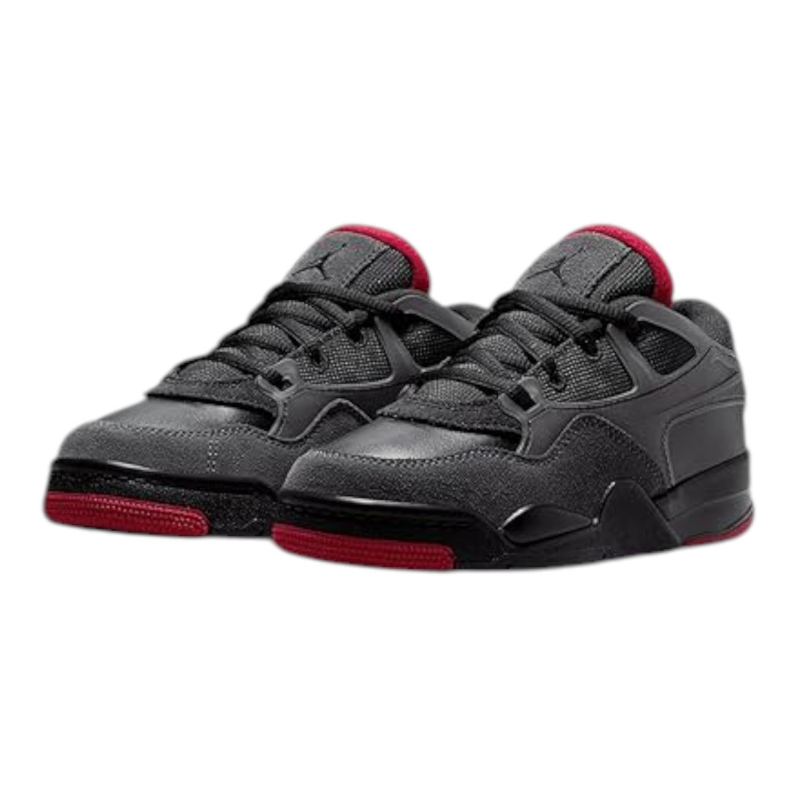 The [FQ7936-060] Preschool Air Jordan Retro 4 RM 'Bred' is a stylish and comfortable pair of athletic shoes for kids. Featuring a classic black color with a round toe and lace-up closure, these sneakers are perfect for both activewear and casual occasions. Made with leather uppers and rubber outsoles, these Air Jordan 4s offer moderate cushioning and are designed for basketball performance. With a flat heel height and standard shoe width, these shoes are ideal for summer, fall, and spring seasons. The Air Jordan brand and iconic sneaker style make them a popular choice among kids looking for fashionable footwear.