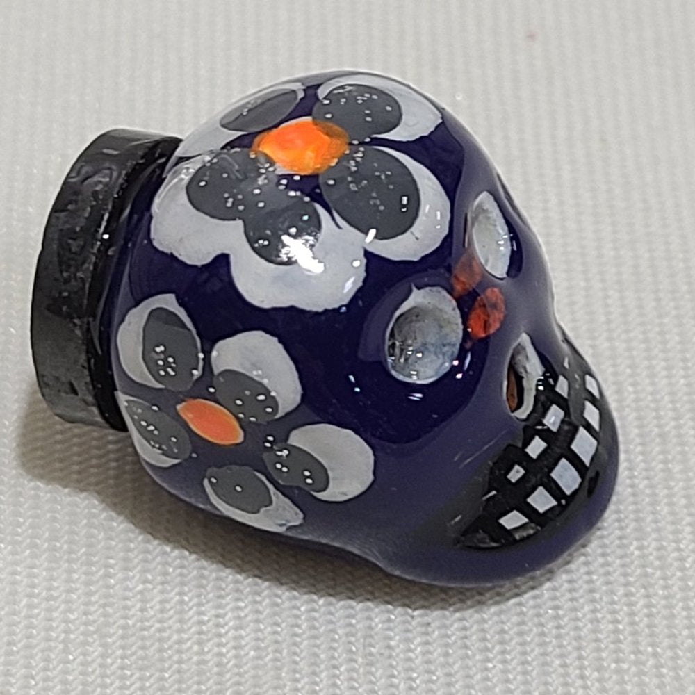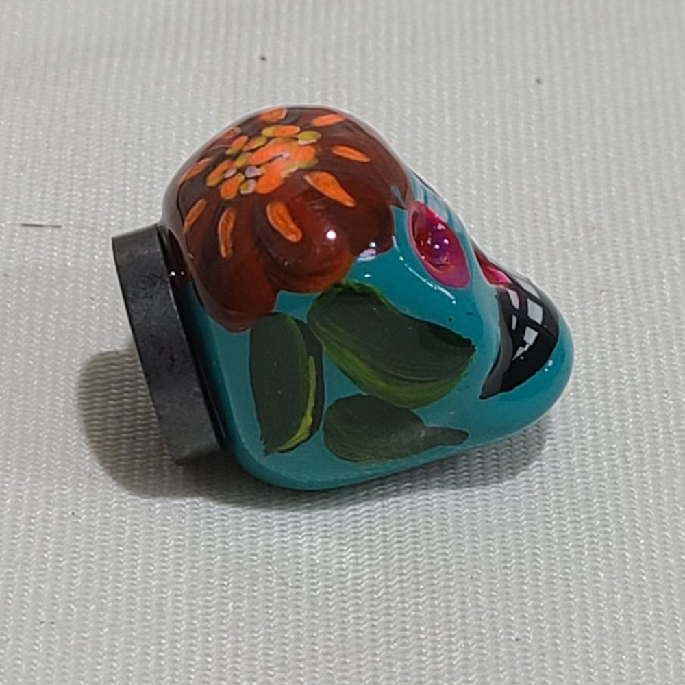 Beautiful, Rare, and Unique Day of the Dead Clay Magnet set. These tiny one inch talevera clay magnets were twice fired and hand painted by artisans in Mexico. No magnet is identical! They can be used as magnets or decoration. Each skull contains a made in Mexico sticker tag.