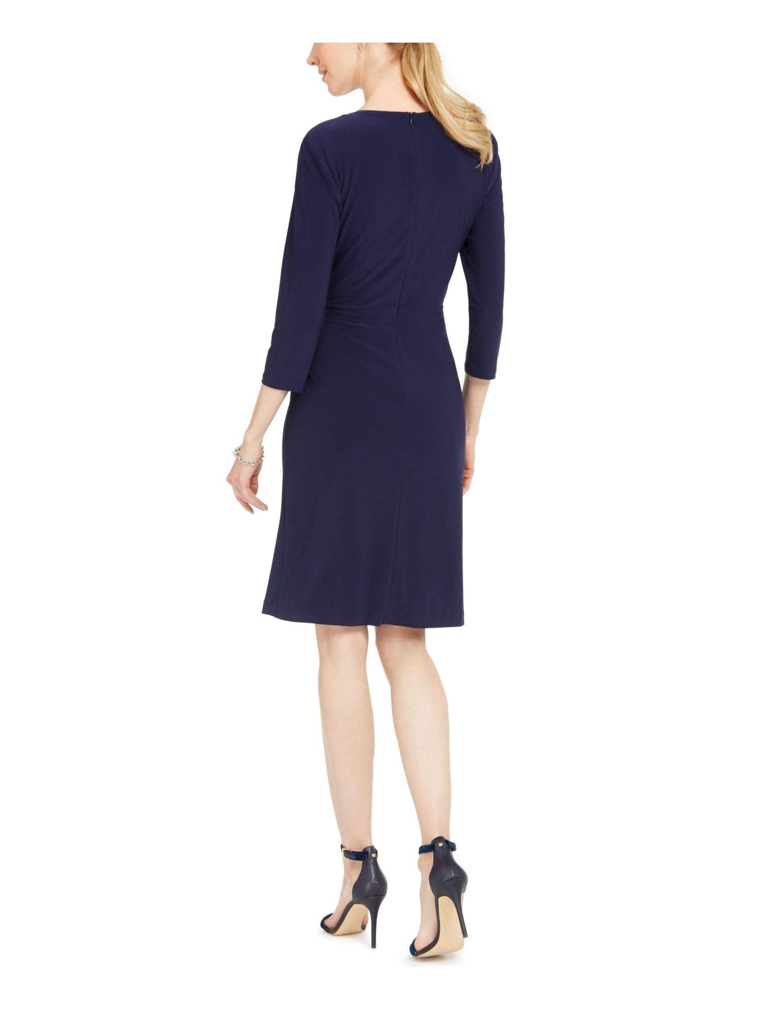 Jessica Howard Womens Faux Wrap 3/4 Sleeve Wear to Work Dress Navy 10