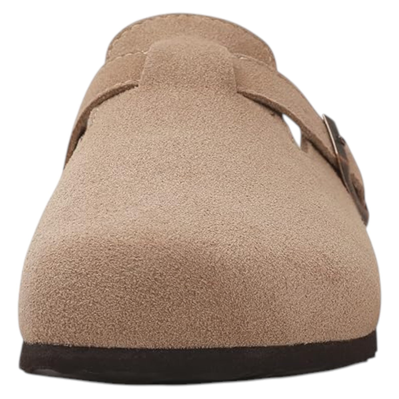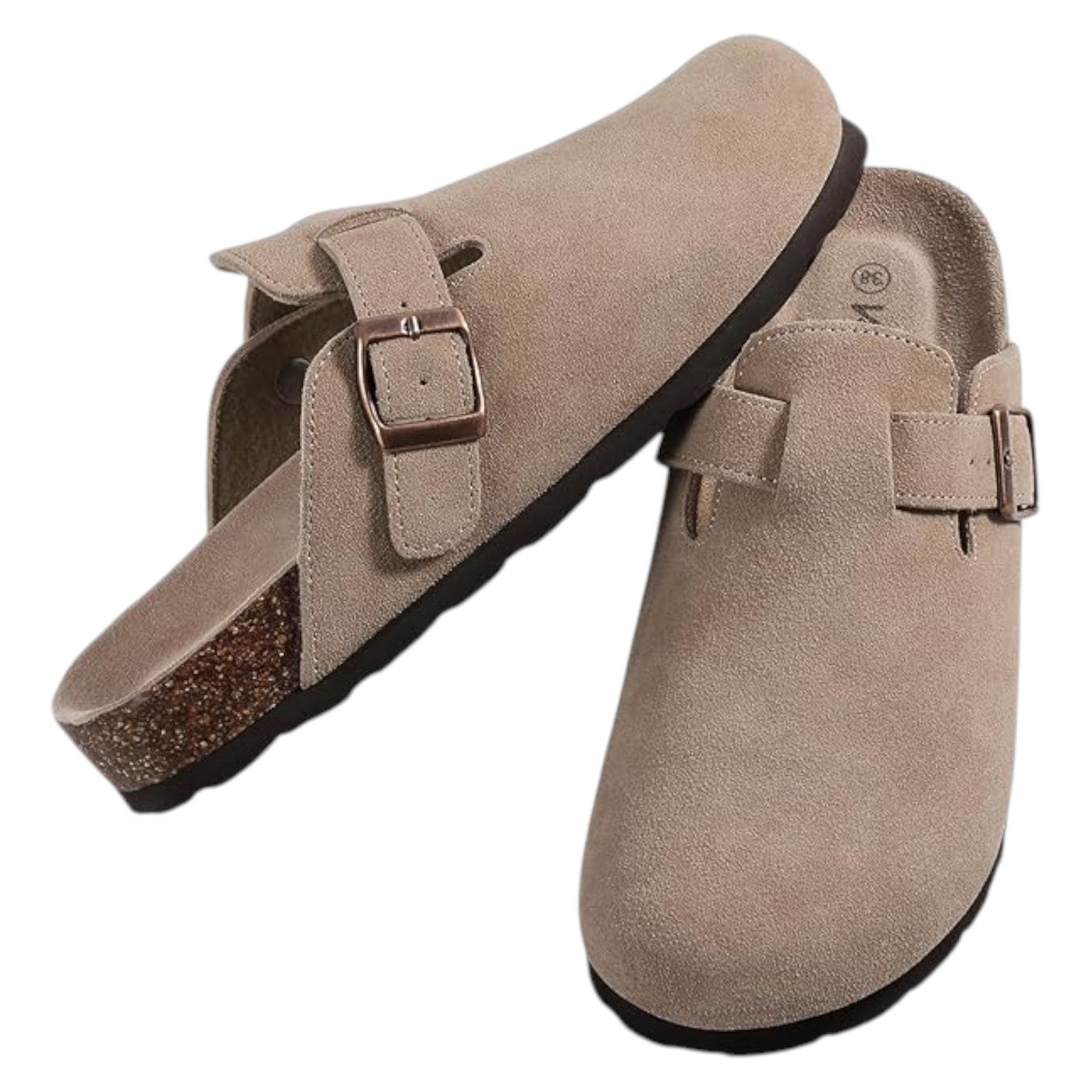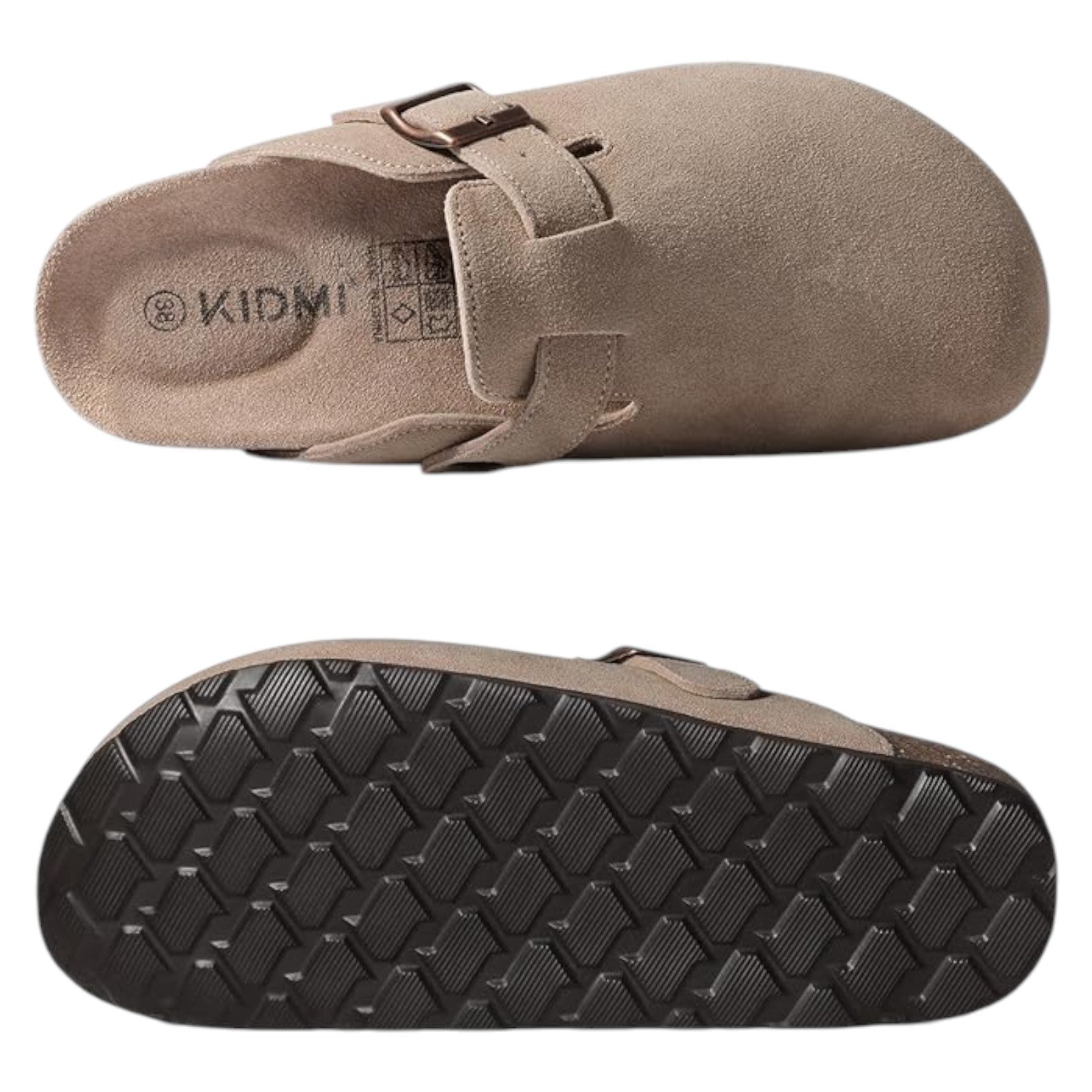 The KIDMI Women's Suede Clogs are a stylish and comfortable option for casual wear. Featuring a round toe, slip-on closure, and flat heel, these clogs are made of suede leather with a cork footbed for added comfort. The adjustable strap adds a convenient touch, making them a practical choice for everyday wear. Perfect for summer, fall, or spring, these sandals are versatile and easy to wear.