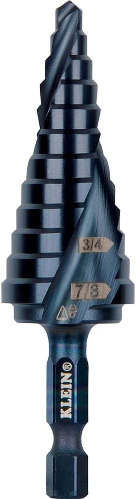 Klein Tools QRST14 Step Drill Bit, Quick Release, Spiral Flute, 3/16 to 7/8 In