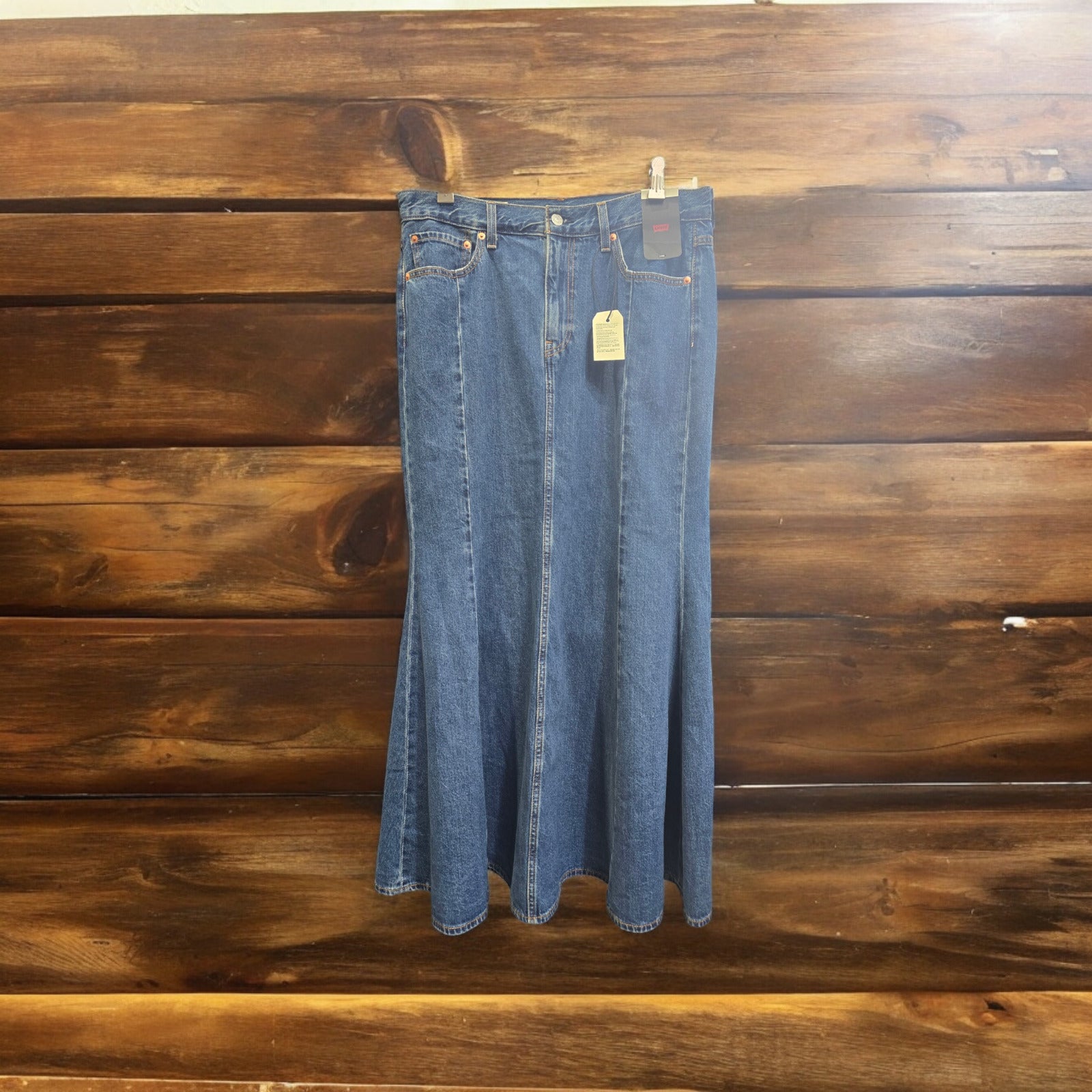 This Levi's Premium woman's denim skirt in blue is a must-have addition to your wardrobe. Made from 100% cotton, it offers both comfort and style. The long, maxi length is perfect for any occasion and the solid pattern makes it easy to pair with any top. The skirt is available in various sizes, making it accessible to all women.