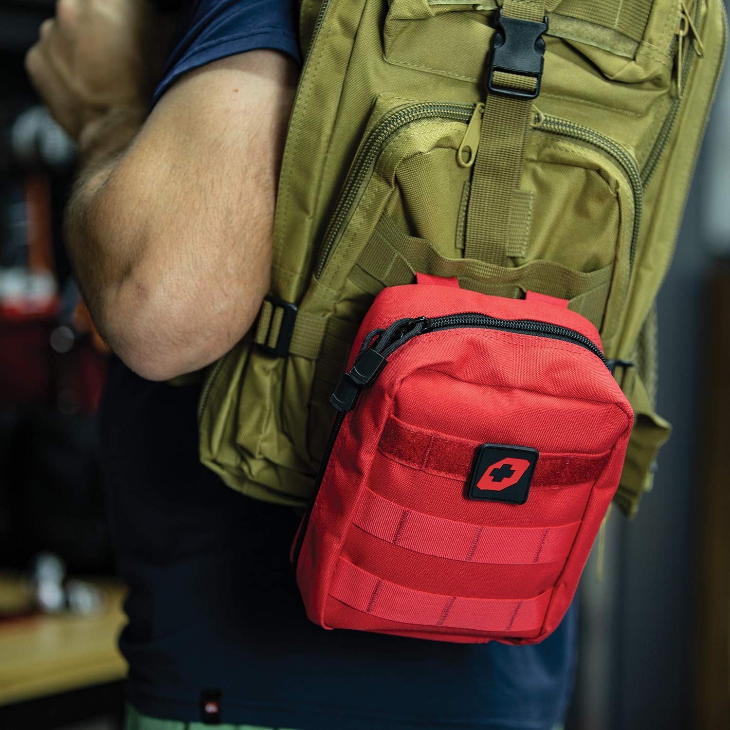 This 116piece First Aid Survival Tactical Pack is perfect for the everyday outdoorsman and has what you need to stay safe on your next outdoor excursion Builtin straps make this the perfect addition to any MOLLE kit Packed full of Approved and Certified medical supplies and survival tools for emergency situationsFeatures. Convenient pack with straps. Features essential survival items including first aid kit supplies. Compact grabandgo design with MOLLE attachmentIncludes. Poncho survival thermal blanket razor blade 4 safety pins scissors sewing kit paracord 10 water purification tablets flashlight with 2 AA batteries flint and fire striker First aid bag First aid kit includes abdominal pad 5 extralarge adhesive bandages 4 fingertip adhesive bandages 4 knuckle adhesive bandages 25 standardsize adhesive bandages 10 alcohol prep pads 5 povidoneiodine prep pads 6 antiseptic cleansing wipes 6 butterfly closure strips disposable cold compress 10 cotton tip applicators 4 stingrelief pads 2 triangular bandages disposable vinyl gloves elastic conforming bandage first aid tape 3 sterile gauze pads moleskin metal tweezers and buckle tourniquetSpecifications. Weight 15 lbs