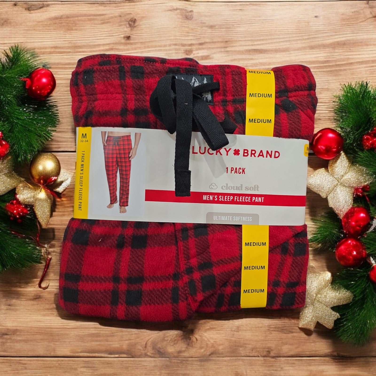 Lucky Brand Men's Sleep Fleece Pant, Red Plaid, M