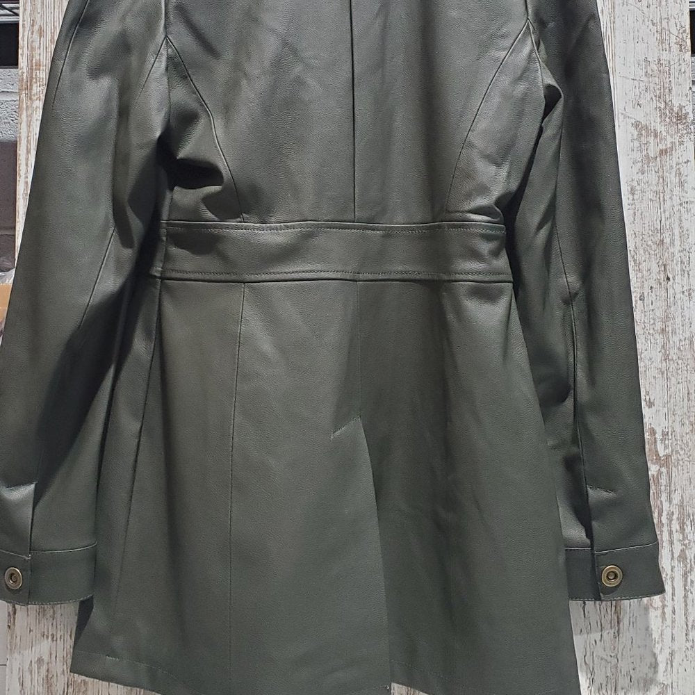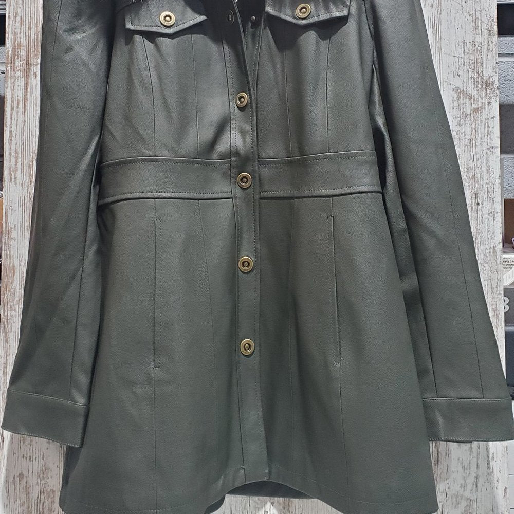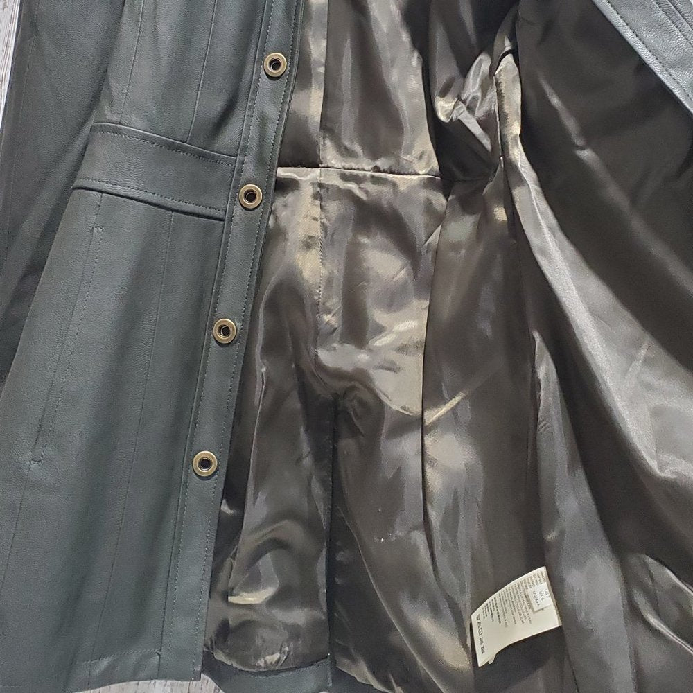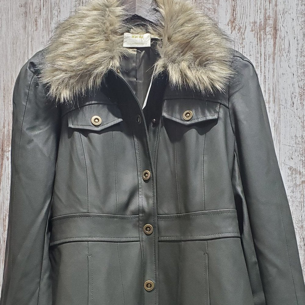 With a faux leather finish and removable faux fur trim, this coat is sure to keep you snug and stylish through the cooler months.