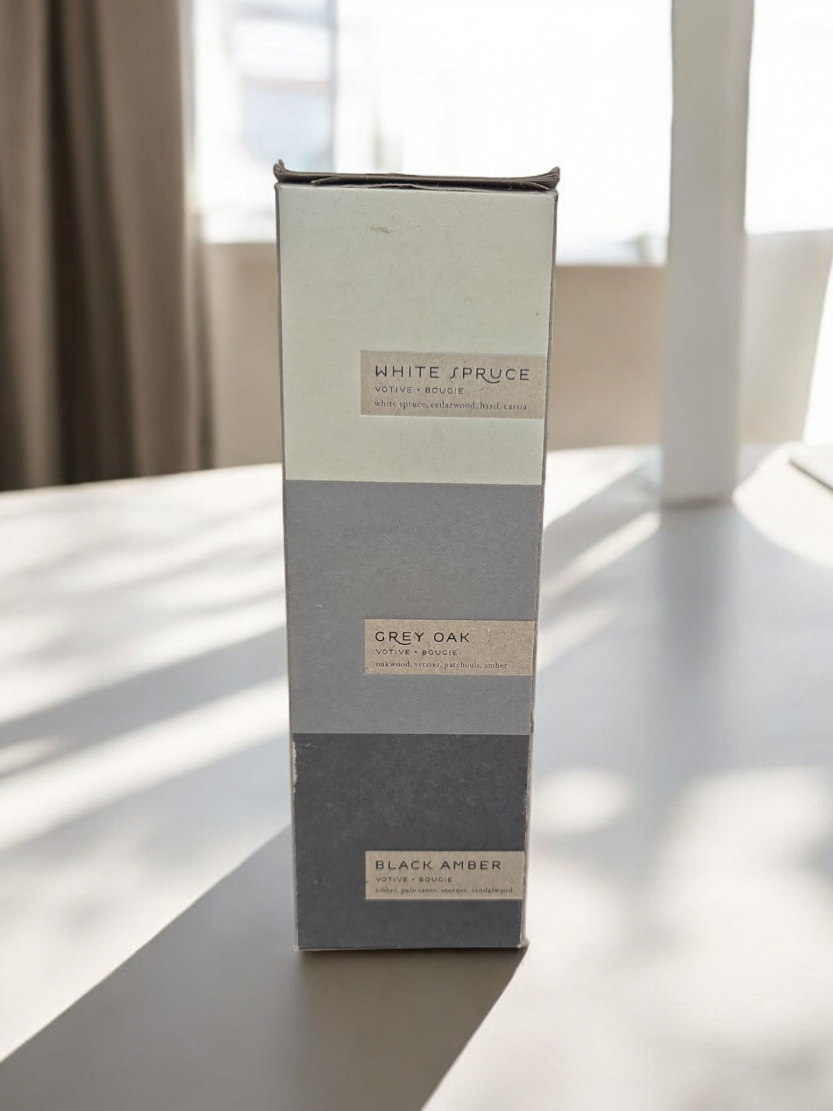 Mason Ceramic Scented Candles, White Spruce/ Grey Oak/Black Amber/Mini, Set of 3