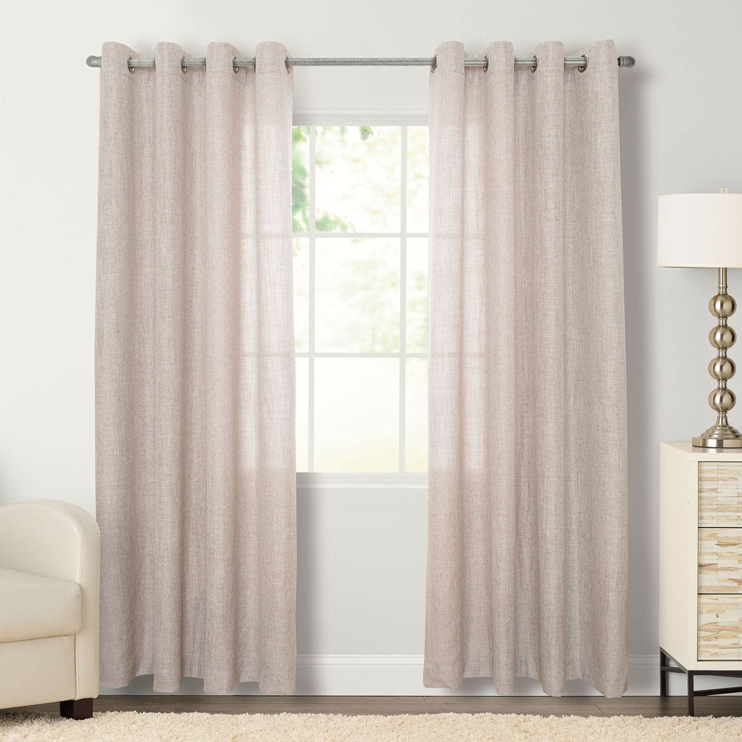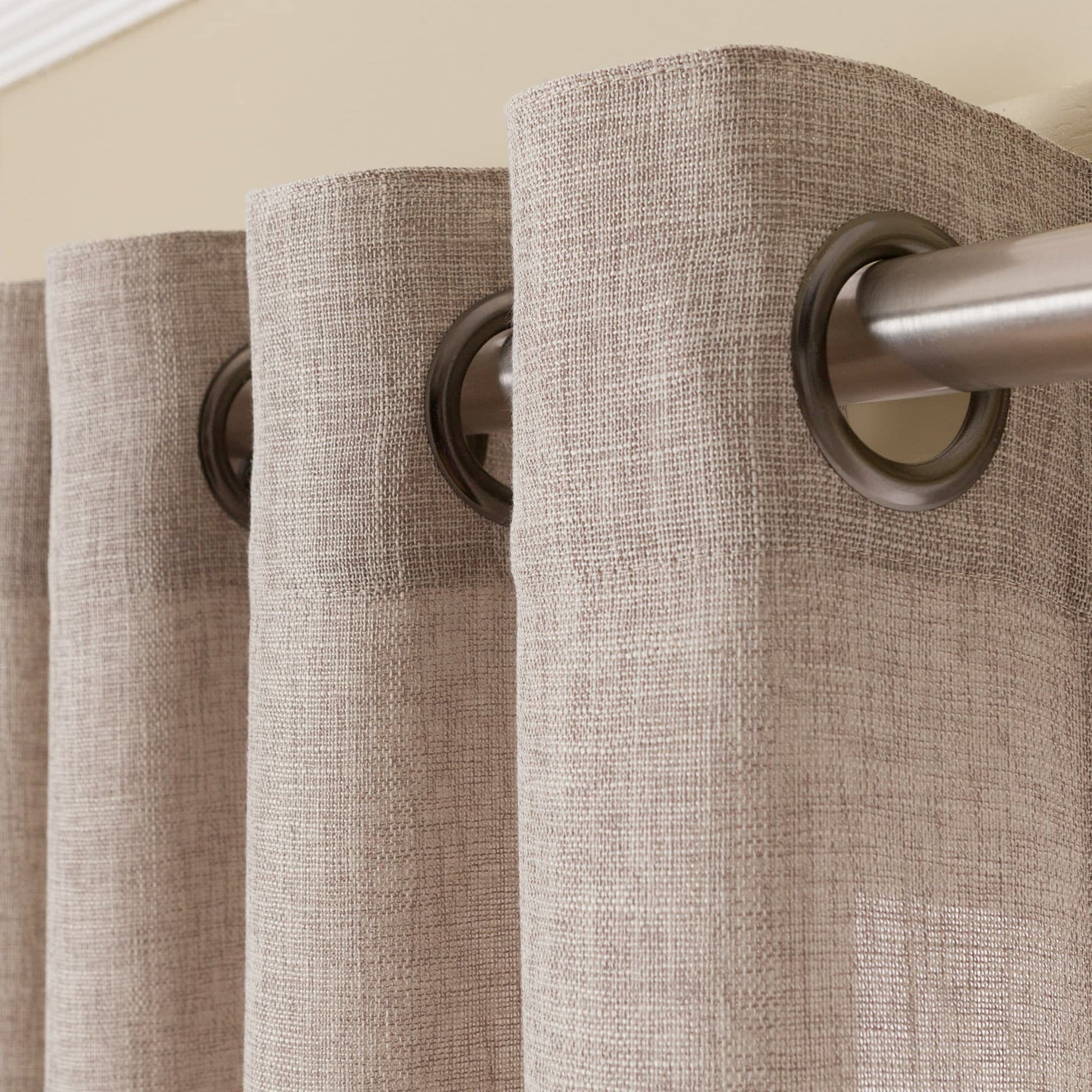 Soften any room with the natural feel of Layton grommet top panels from Miller Curtains. The weave incorporates natural slubs for texture. Antique finished grommet top for easy installation. Machine washable. Each panel sold separately.
