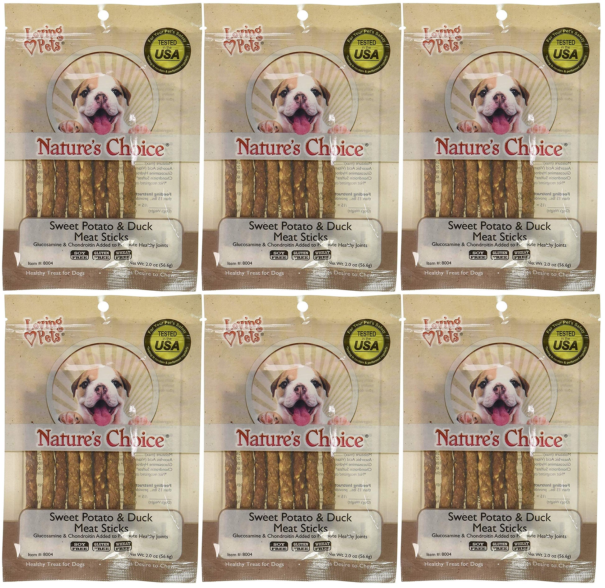 Truly for the health-conscious pet owner, Nature's Choice Duck and Sweet Potato Meat Sticks are exactly what they appear to be; pure meat without any chemical additives, fillers or by-products. What's more, unlike most meat sticks on the market, we don't add glycerin to artificially increase moisture. Nature's Choice Duck and Sweet Potato Meat Sticks contain glucosamine and chondroitin to help keep your dog's joints happy and healthy, and they're part of our Tested in the U.S.A. Quality Assurance Program, so you can always feel safe when giving them to your dog.