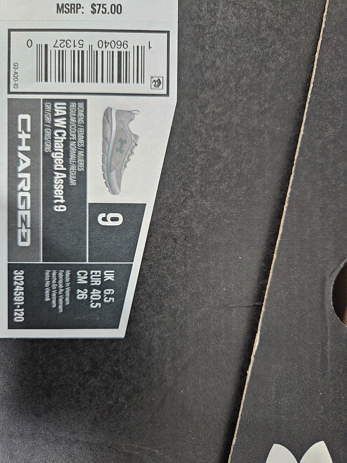 NEW IN BOX WOMEN'S UNDER ARMOUR CHARGED ASSERT 9 GRAY / AQUA ATHLETIC SHOES SZ 9