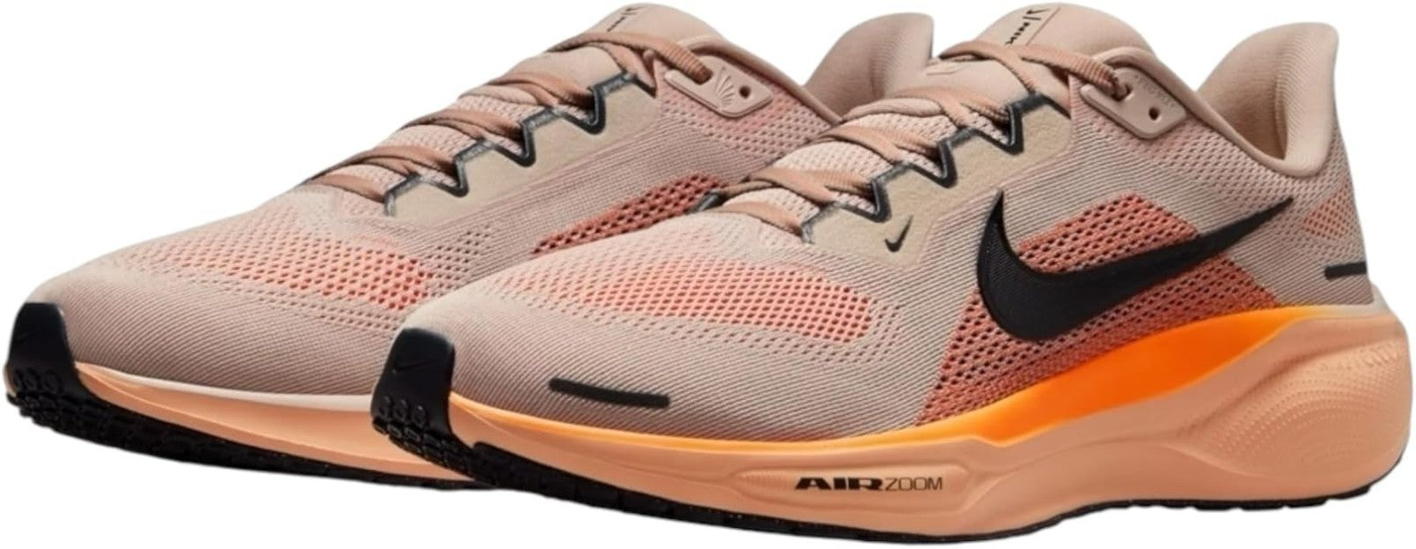 The Nike Pegasus Men's Shoes in Fossil Stone/Obsidian/Orange (FD2722-201) are a stylish and comfortable option for casual wear. Featuring a lace-up closure, rubber outsole, and foam insole, these sneakers offer both support and comfort for summer, fall, and spring seasons. The low-top design and standard shoe width make them versatile for various activities such as gym training, cross-training, crossfit, and running. Made with synthetic upper material and synthetic lining, these Nike Air Zoom Pegasus 41 shoes are a great choice for men's athletic footwear.