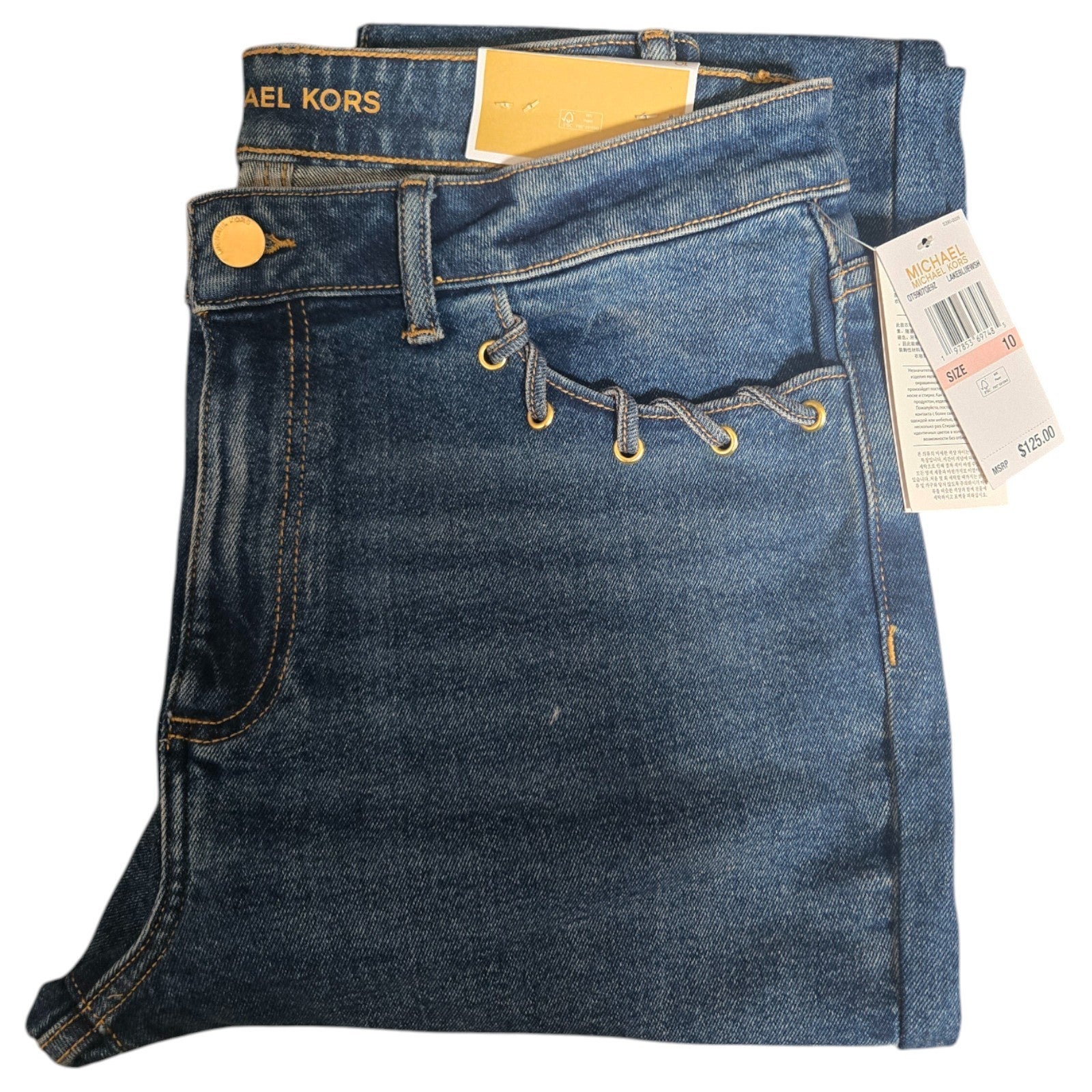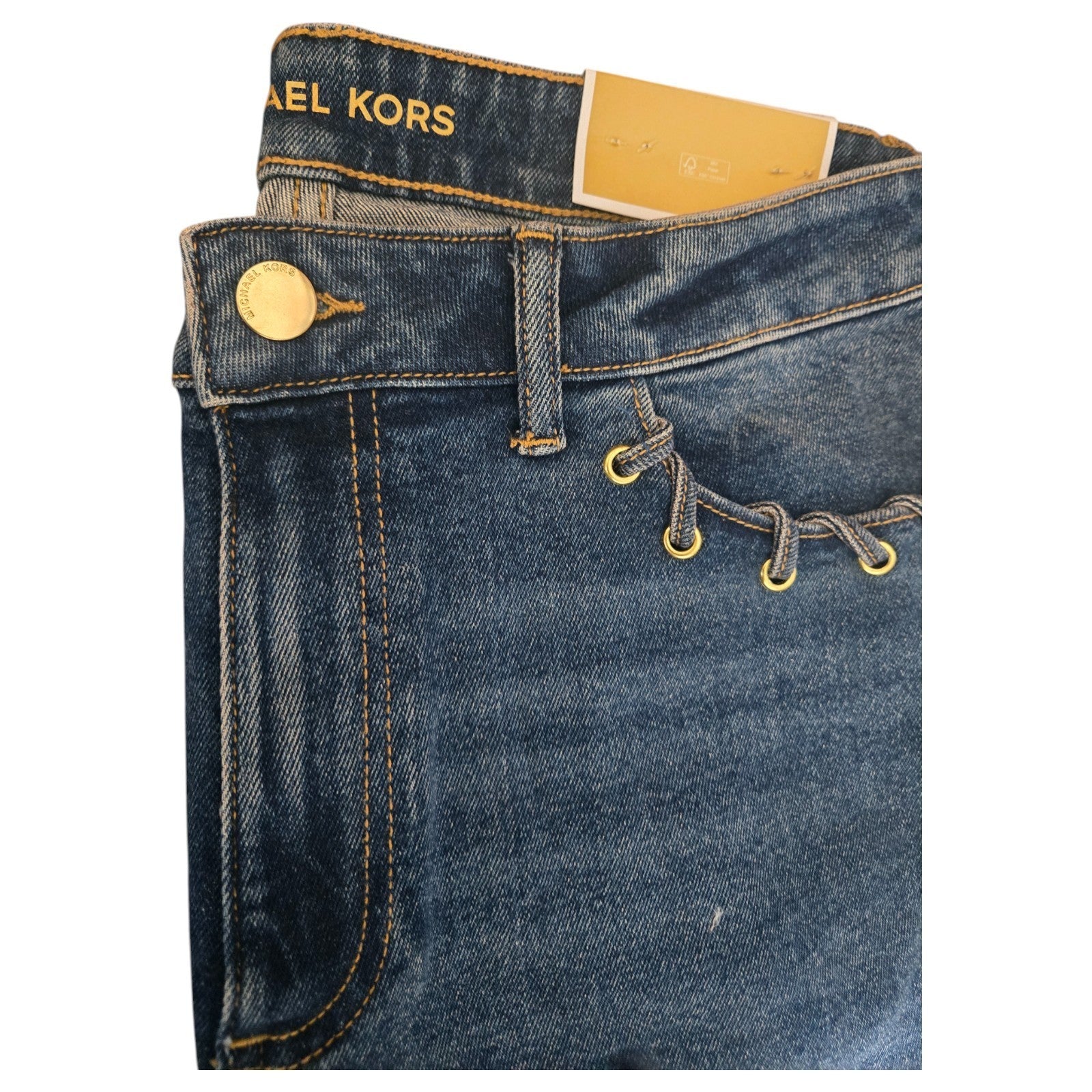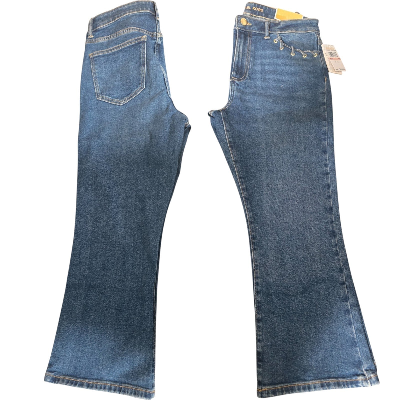 NWT MICHAEL KORS Selma Crop Flare High Rise Jeans | MK logo | Lake Blue Wash