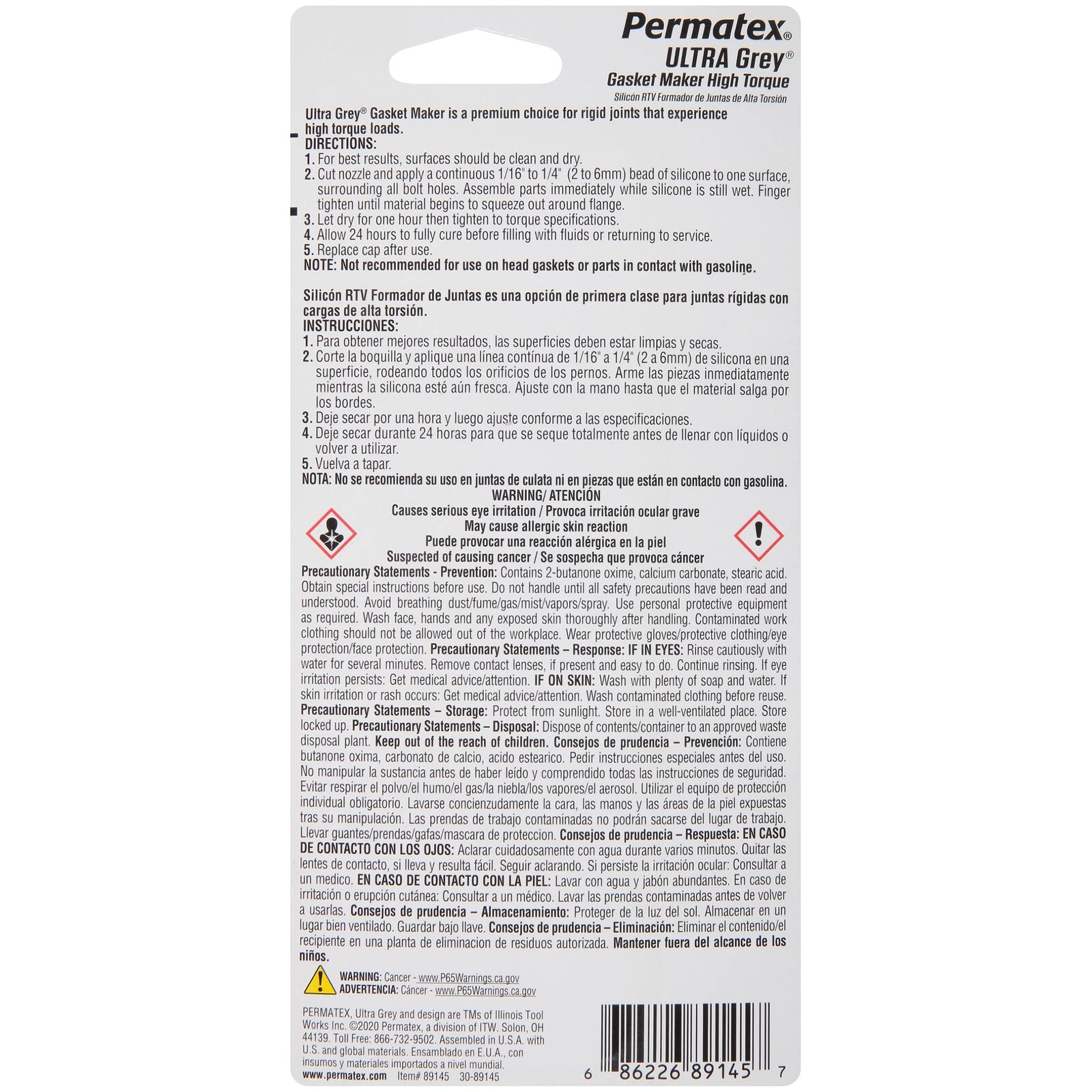 Permatex 82194-12PK Ultra Grey Rigid High-Torque RTV Silicone Gasket Maker, 3.5