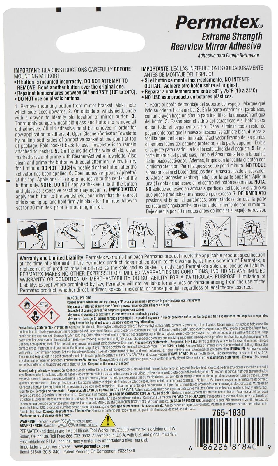 Permatex Extreme Rearview Mirror Profressional Strength Adhesive Kit
