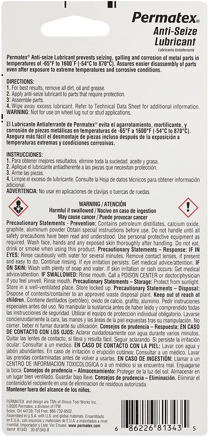 Permatex Spray Nine Corporation/Knight 81343 Anti-Seize Lubricant, 1 oz. Tube (
