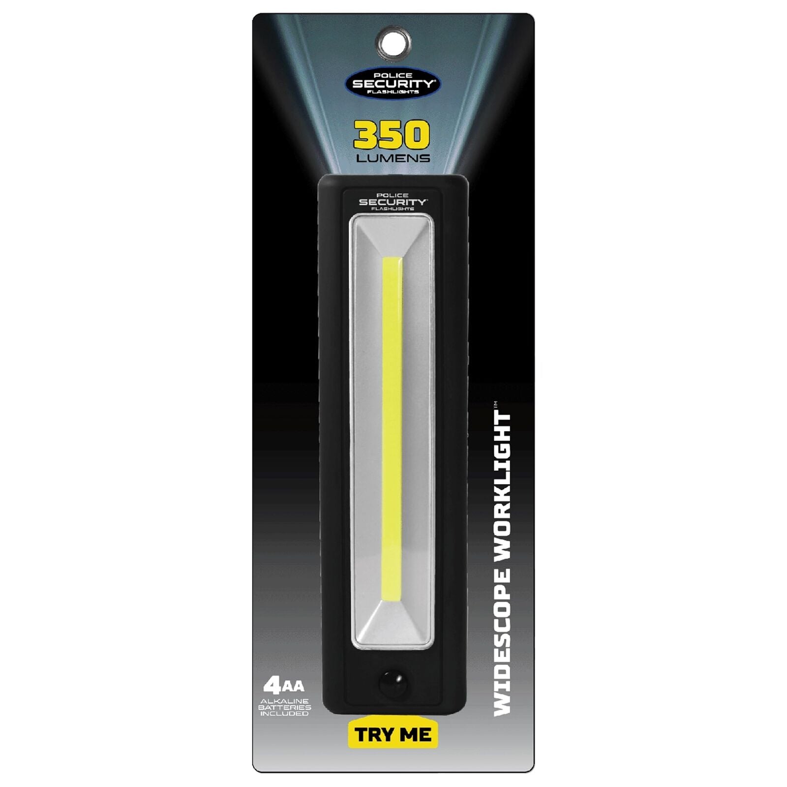Police Security’s broad beam work light shines brightly with 350 lumens and can run continuously for up to 6 hours. It's a portable, powerful broad beam work light and flashlight in one. Its foldable hook and magnetic base give mechanics make it ideal for hands-free convenience and the ultimate in versatility.