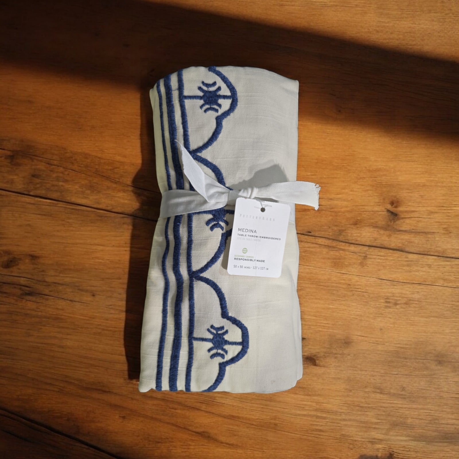 Pottery Barn Medina Embroidered Cotton Table Throw - 50x50