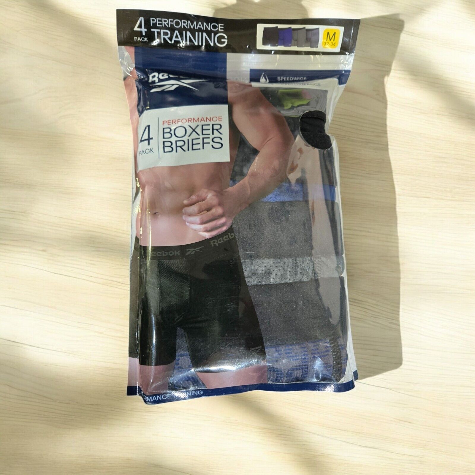 Reebok Men's 4-Pack Performance Boxer Briefs Blue/Grays/Blacks, M (32-34)