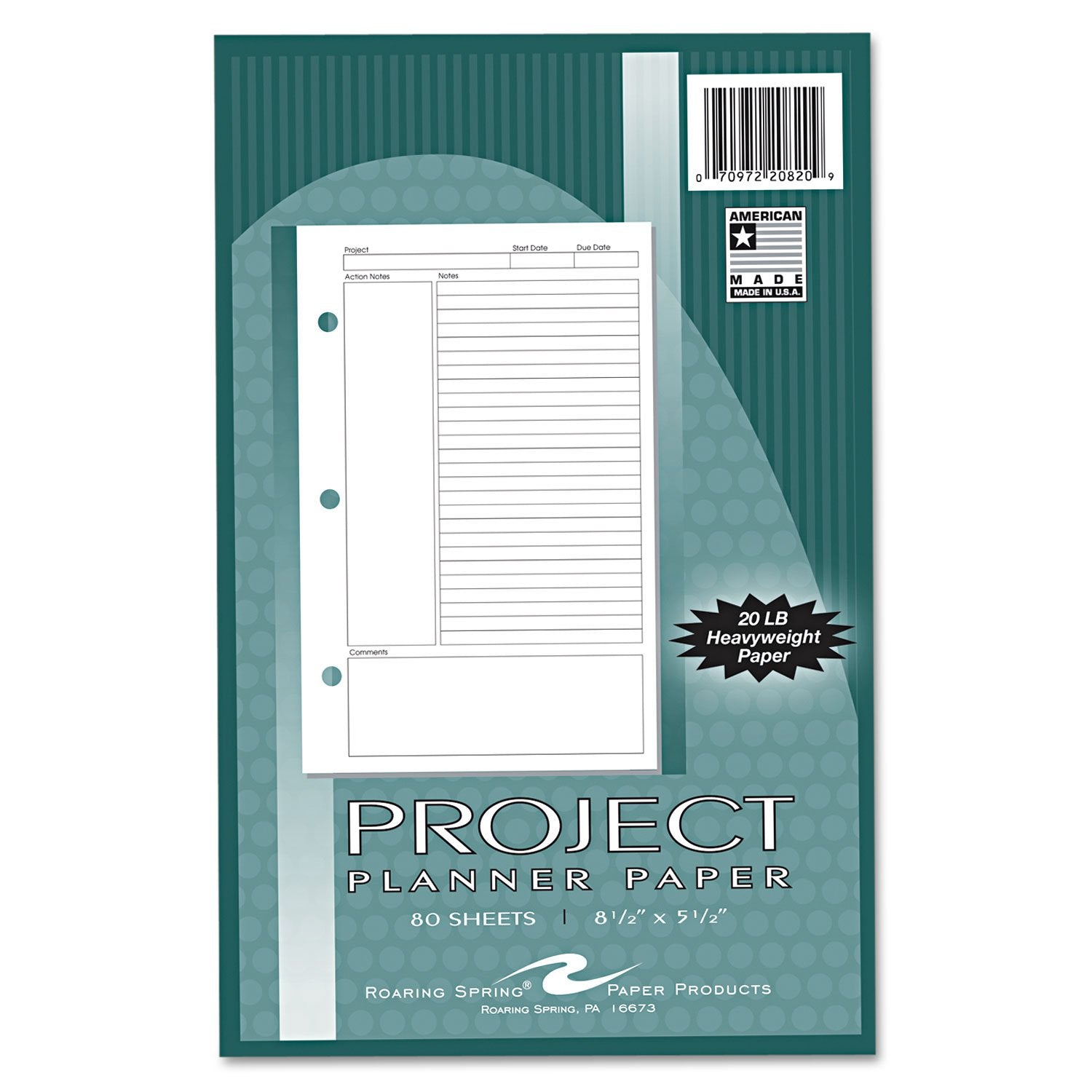Roaring Spring 20820 Project Planner Paper 8 1/2 x 5 1/2 White 80 Sheets