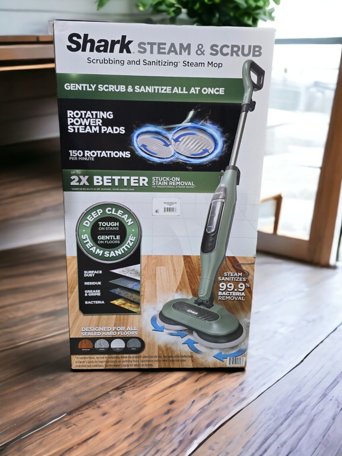 - Scrubbing and sanitizing* steam mop, tough on stains and gentle on floors.