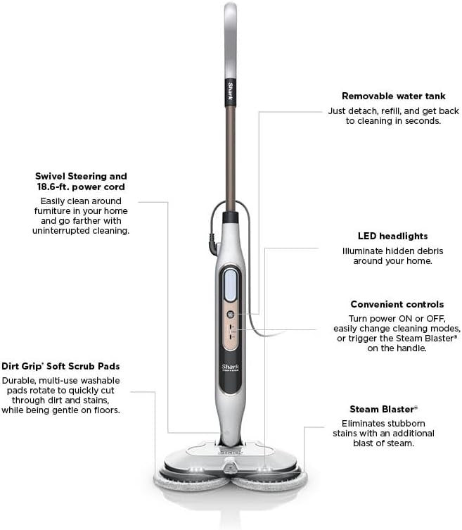 The Shark Steam and Scrub Corded Steam Mop and Cleaner S8201 is a versatile cleaning tool designed for various cleaning tasks around the home. With a microfiber head material and synthetic bristle material, this mop is effective for scrubbing and can be used as a spray mop, spin mop, flat mop, or washing machine. The plastic handle makes it easy to maneuver, and the white color adds a sleek look to your home. This multifunctional mop from Shark is a convenient and efficient way to clean your floors and surfaces.