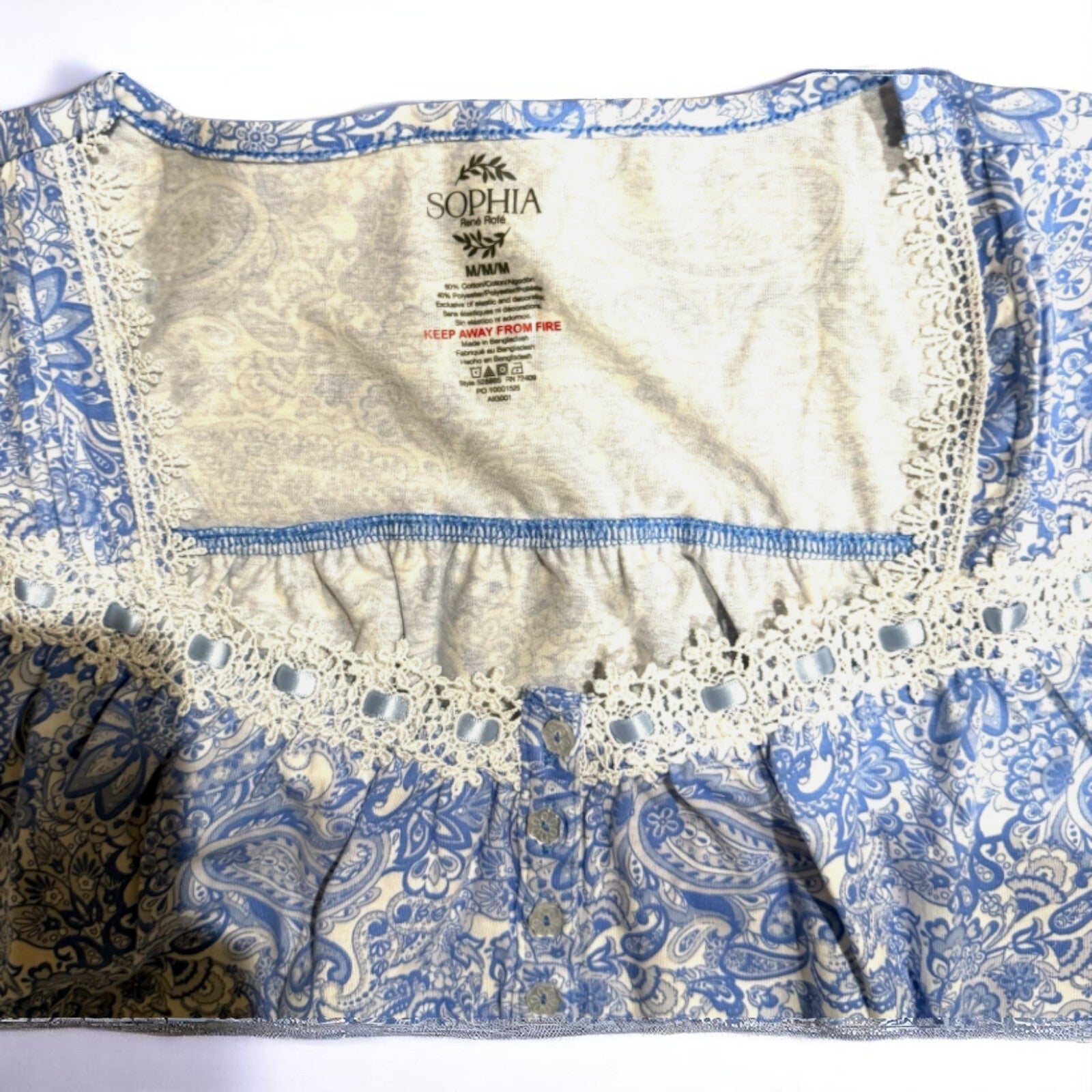 The SOPHIA Rene Rofe Women's Paisley Short Sleeve Nightgown is a classic and stylish sleepwear option for women. Made from a blend of polyester and cotton, this gown features a beautiful blue and white paisley pattern with lace accents. The square neckline and button closure add a touch of sophistication, making it perfect for summer and spring seasons. Easy to care for with its machine washable design, this nightgown from the reputable brand SOPHIA Rene Rofe is a must-have for any woman's wardrobe.