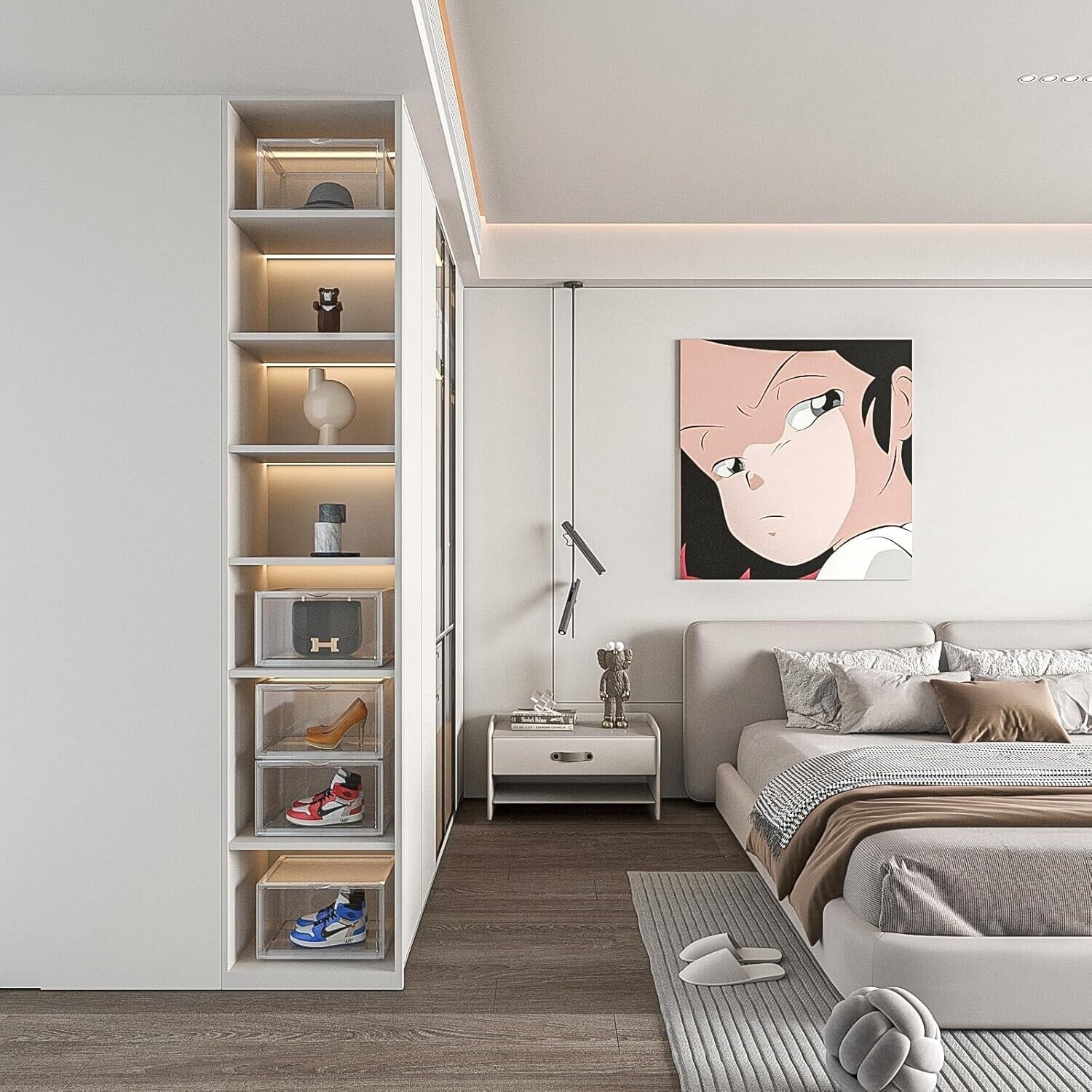 Introducing the Stackable Shoe Box - Organizer 4 Pack Shoe Rack, a perfect solution for organizing your shoe collection. This four-piece shoe box offers ample storage space for your shoes and is made of durable plastic material that is built to last. The clear color of the box makes it easy to see the contents inside, while the stackable feature allows for convenient storage and easy access to your entire collection.