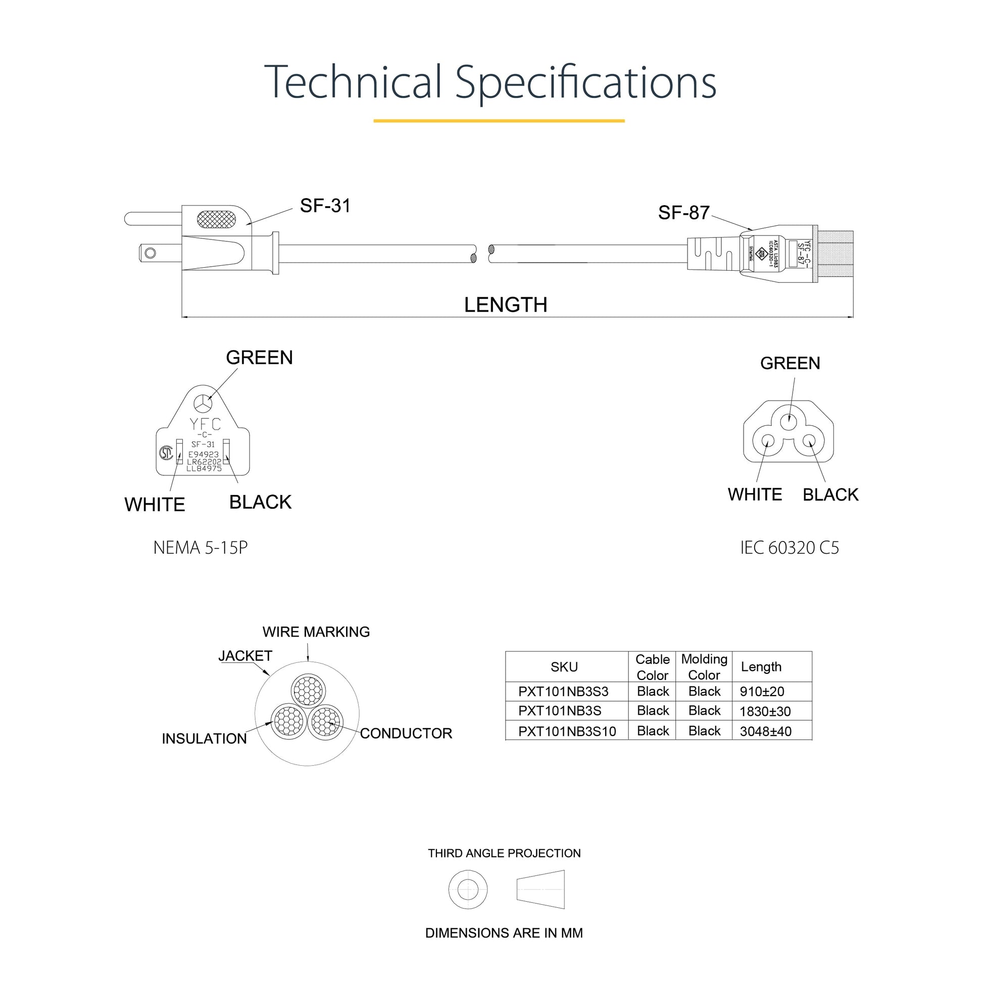 StarTech.com PXT101NB3S10 10-Feet Standard Laptop Power Cord