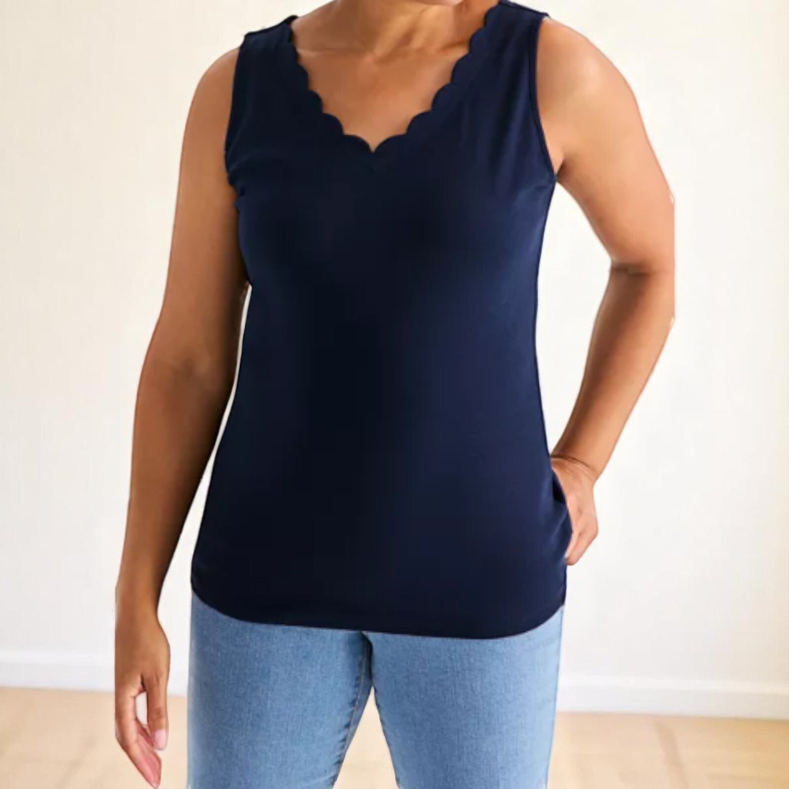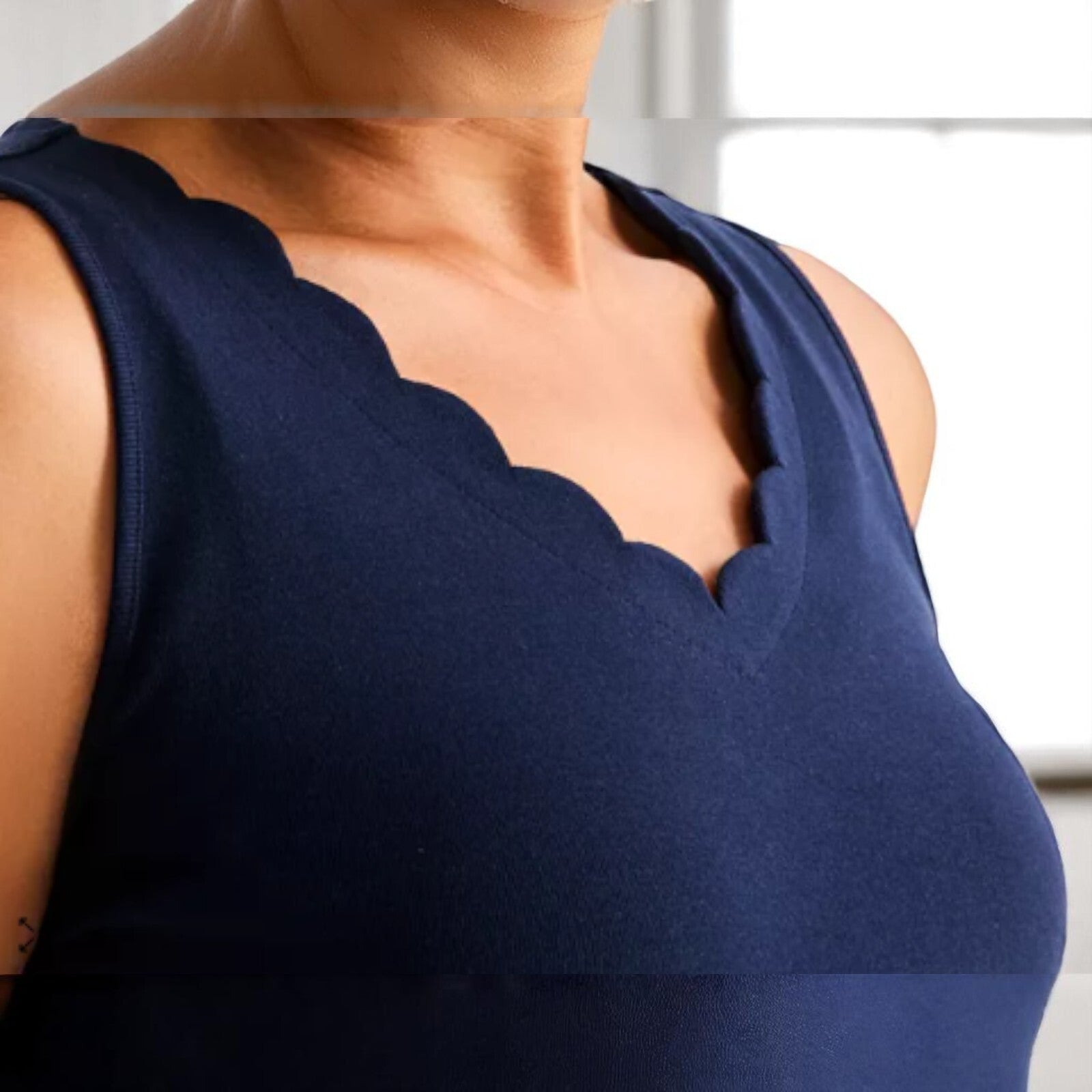 Style & Co Women's Cotton Scalloped V-Neck Sleeveless Top NWT